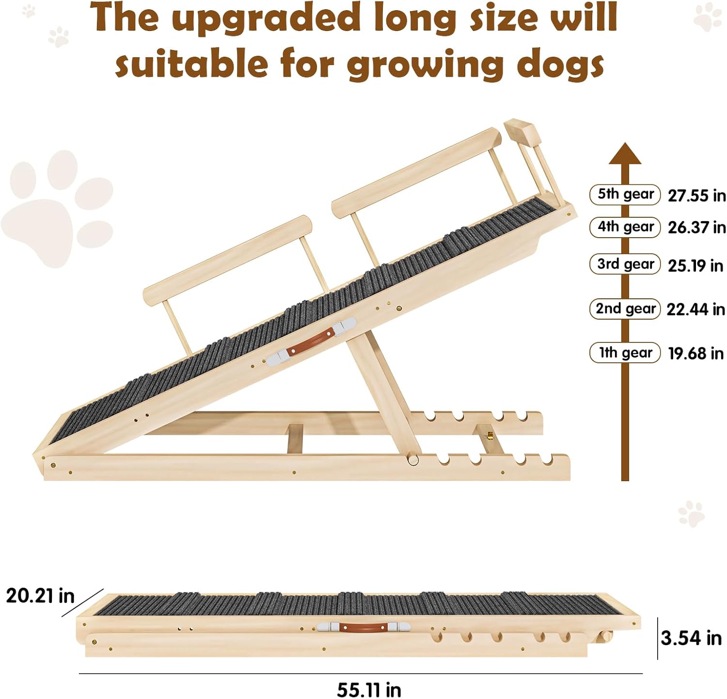 Dog Ramp for Couch, Bed or Car, Wooden 55" Long Pet Stairs for Small & Large Old Dogs & Cats, Hold up to 250lb, 6 Adjustable Height from 19.68" to 27.55" Portable Doggie Steps, Excellent Traction