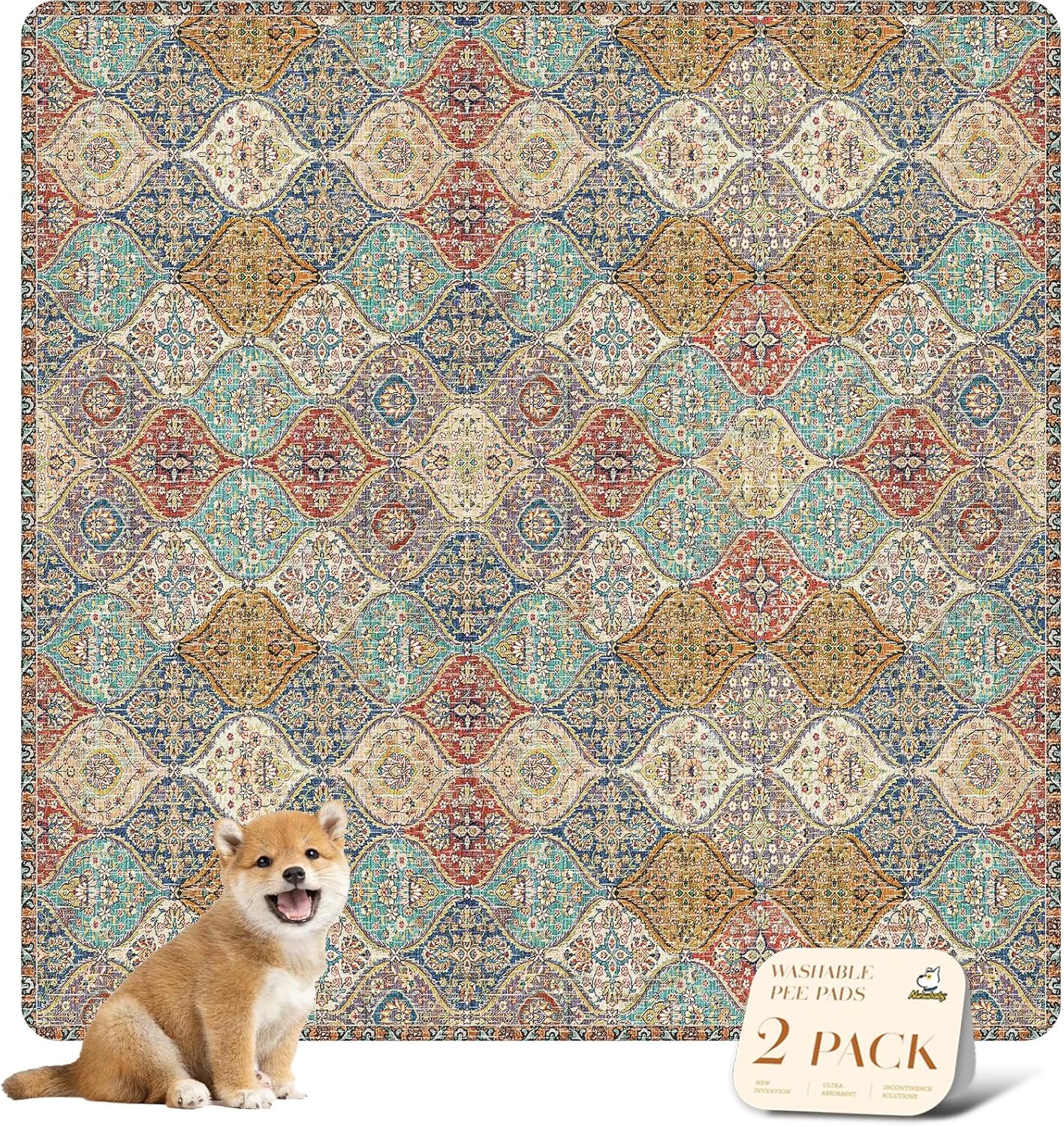 nunubaby Washable Pee Pads for Dogs, Stylish, Non-Slip and Leak-Proof Pee Pads. Reusable Potty Pads for Dogs for Crates and Floors.(Cream/Multi, 54" x54" )