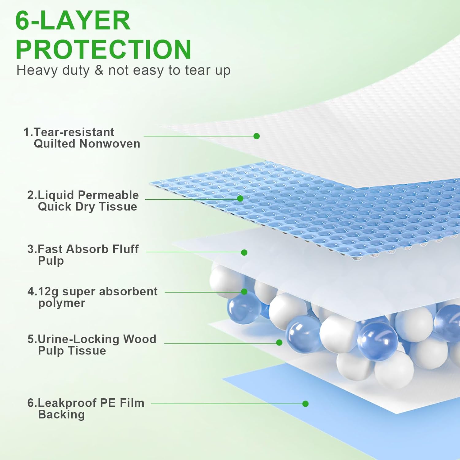 - Durable Leak-Proof Pe Film:Dog Training Pads Also Featured With Pe Film Back And Border To Prevent Any Leaking, It Is More Efficiently To Prevent Floor And Carpet From Pet Urine Damage, Upgraded Thickened Pe Film Is Much More Leak-Proof Tear-Resistant,And Durable