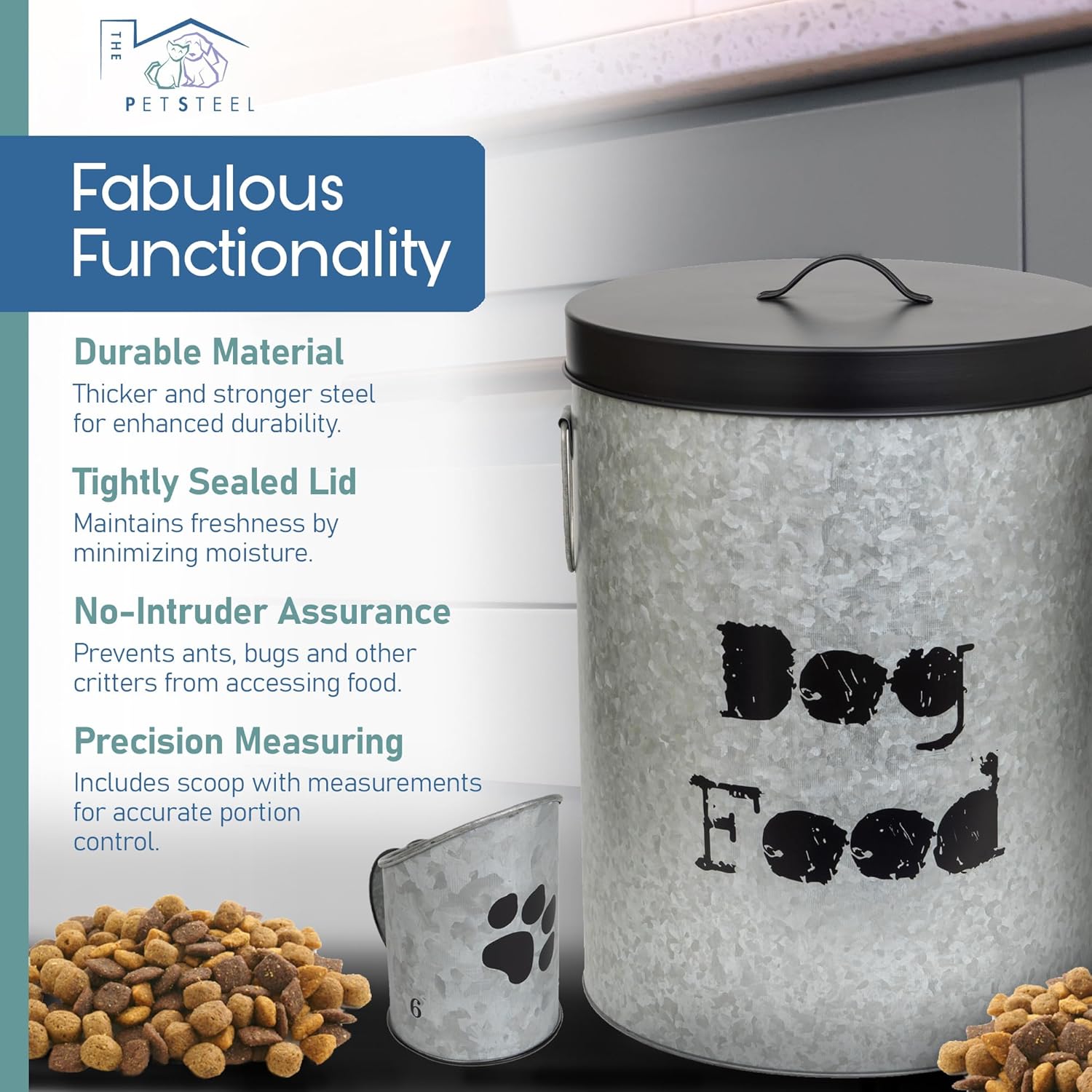 Medium Dog 40lb Pet Food Storage Canister with Scoop – Durable & Airtight for Freshnesss, Minimalist Design & Recyclable, Medium Metal Container (Dog Bin - Medium Size)