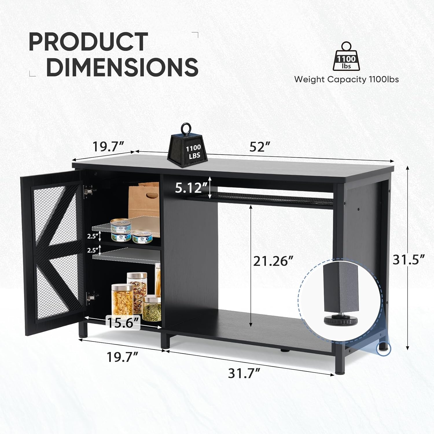 - Product Dimensions : 52"L x 19.7"W x 31.5"H