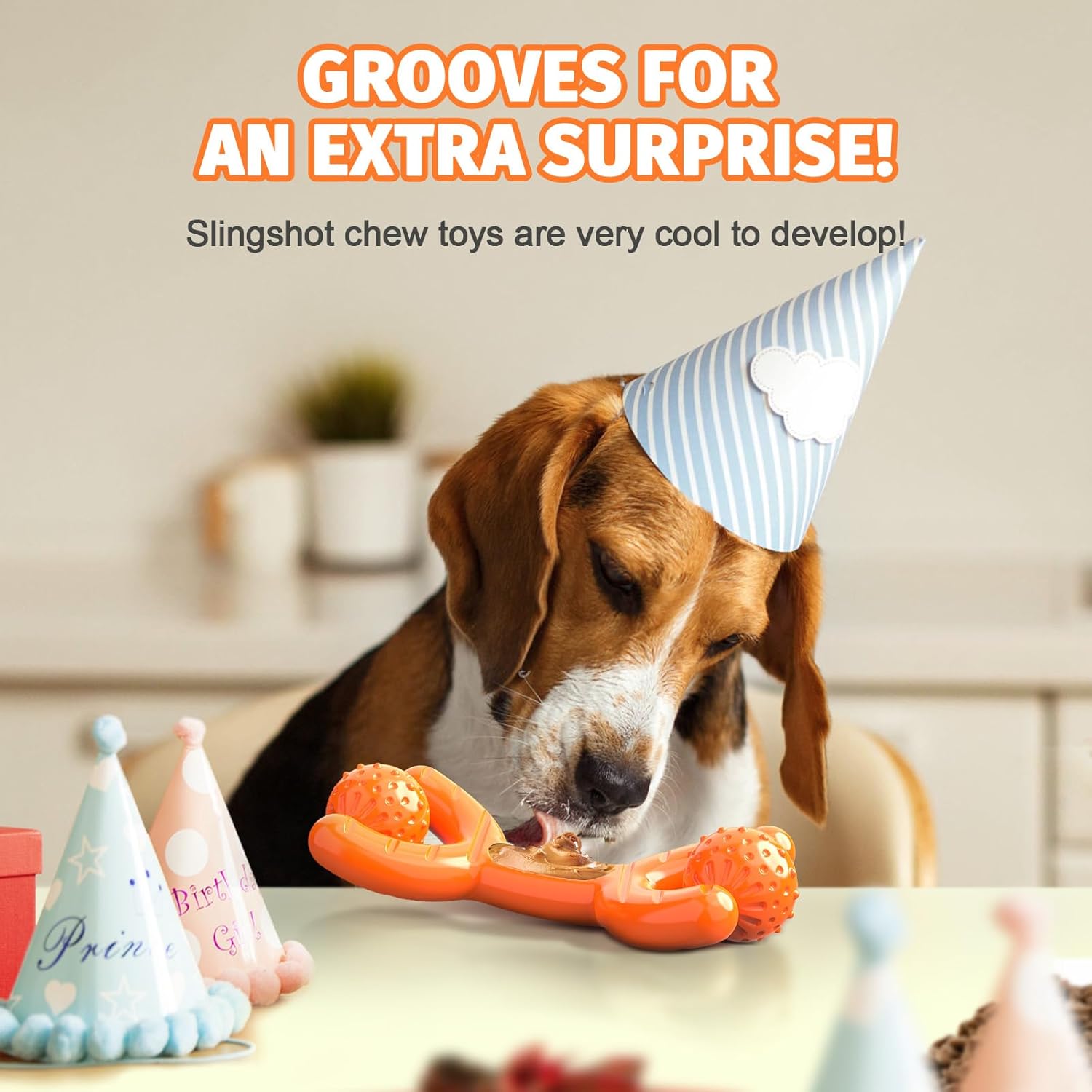 - TREAT-FILLED CHEW TOY FOR MAXIMUM FUN - Grooves for An Extra Surprise!Stuff some your dog's favorite paste treats such as peanut butter,cheese, wet foods, and other spreadable treats a long-lasting and engaging session! Itâs freezer safe and easy washable !itâs a great choice for dog toys to keep them busy and tough dog toys for aggressive chewers.