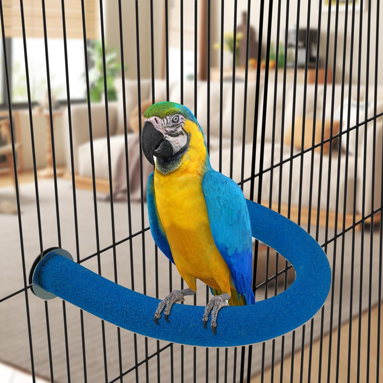Rypet U Shape Parrot Perch Stand Toy for Paw Grinding Clean Stick Exercise, Rough-Surfaced Quartz Bird Perch Standing Cage Accessories for for Small Parakeets Cockatiels Conures Macaws Finches(Blue)