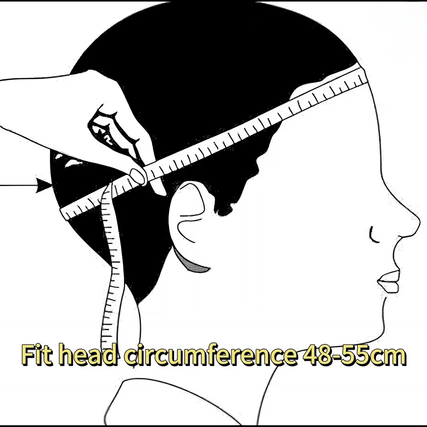 - (Size)FIT 48-54cm head circumference understanding your size: Before making a purchase, place a tape measure at the top of your head, 1 inch above your eyebrows. The tape measure should go across the back of your head and above the bumps on your ears.