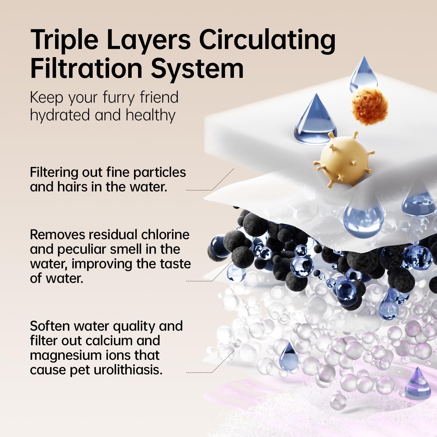 - Hygienic Stainless Steel Tray and Quiet Pump – Rust-resistant tray is durable and easy to clean. Ultra-quiet water pump runs below 35dB for a peaceful environment.