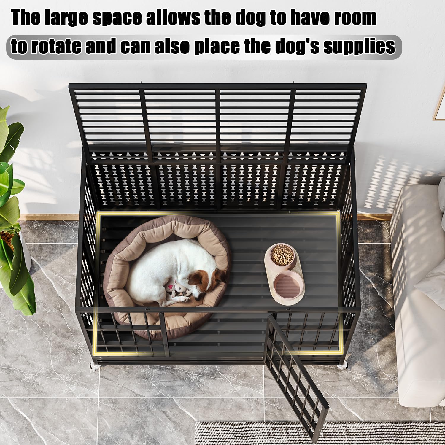 - Two-Door Design for Better Interaction: It is important to build the bond between a dog's owner and dog. That's why we've incorporated a two-door design to make interactions easierâthe front door is designed for dogs to enter and exit with ease. The top door gives you a convenient way to feed, interact, and clean the crate without hassle.