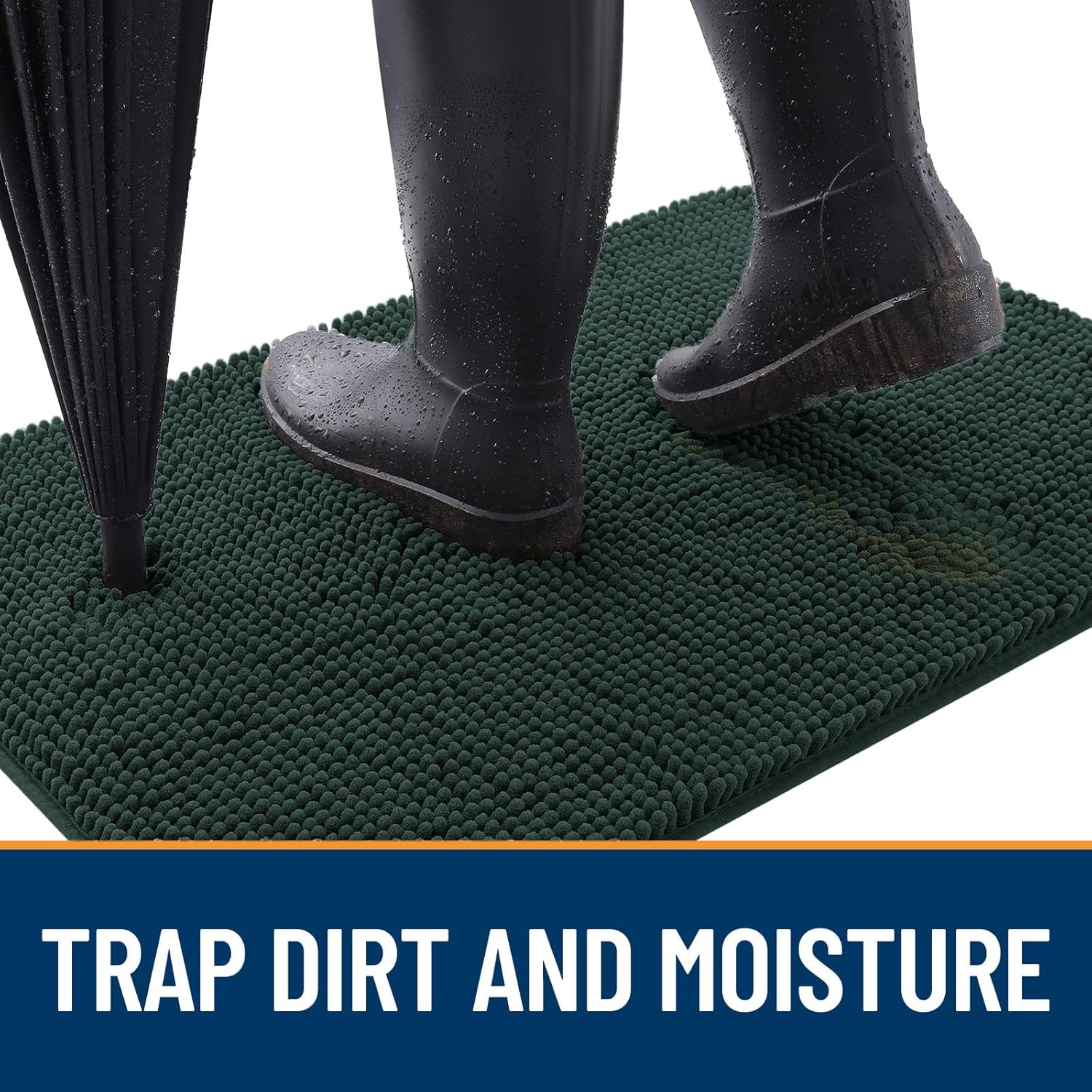 OLANLY Dog Door Mat for Muddy Paws 59x20, Absorbs Moisture and Dirt, Absorbent Non-Slip Washable Doormat, Quick Dry Chenille Mud Mat, Entry Indoor Entryway Carpet for Inside Floor, Blackish Green