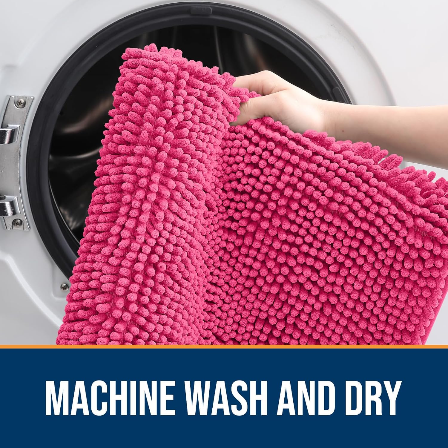 OLANLY Dog Door Mat for Muddy Paws 44x32, Absorbs Moisture and Dirt, Absorbent Non-Slip Washable Doormat, Quick Dry Chenille Mud Mat for Dogs, Entry Indoor Entryway Carpet for Inside Floor, Hot Pink