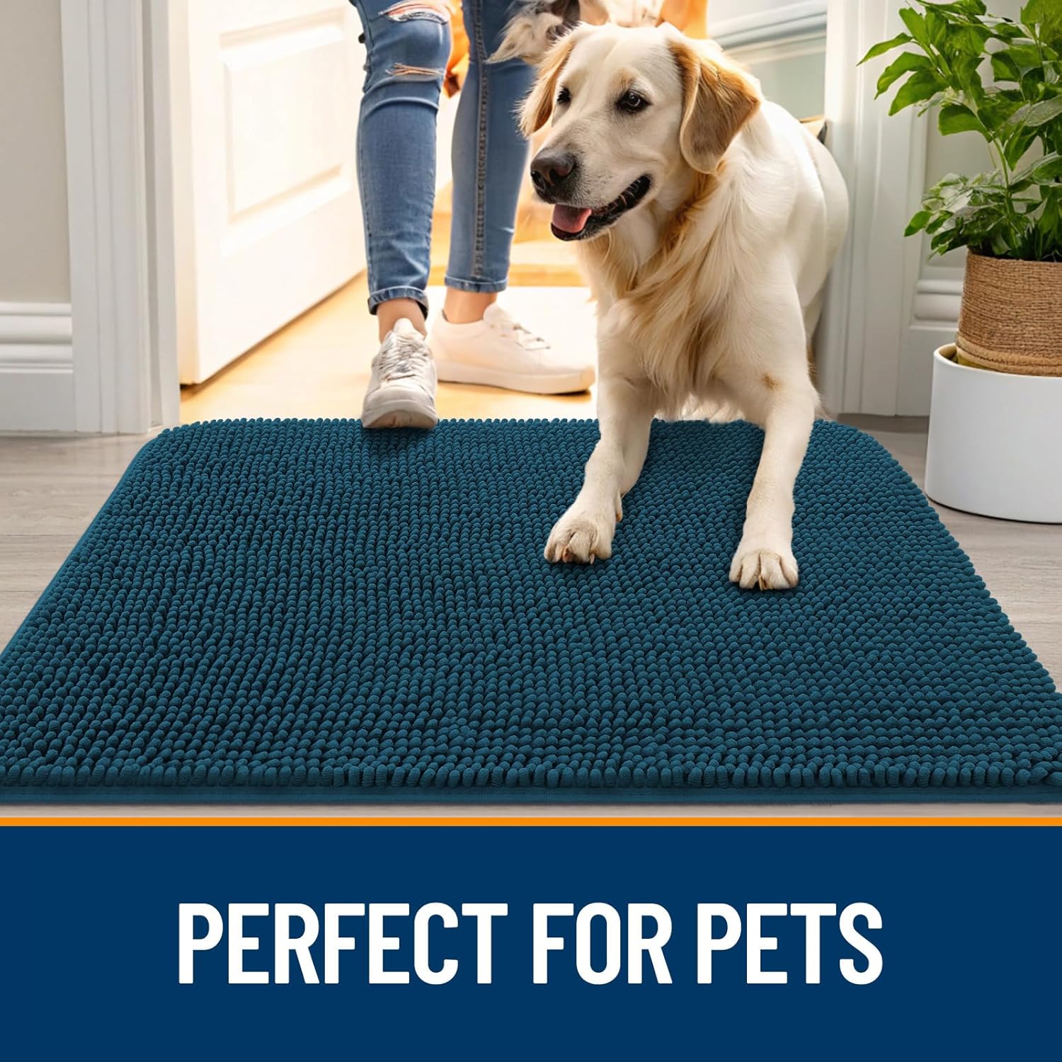 OLANLY Dog Door Mat for Muddy Paws 34x21, Absorbs Moisture and Dirt, Absorbent Non-Slip Washable Doormat, Quick Dry Chenille Mud Mat, Entry Indoor Entryway Carpet for Inside Floor, Atlantic Blue