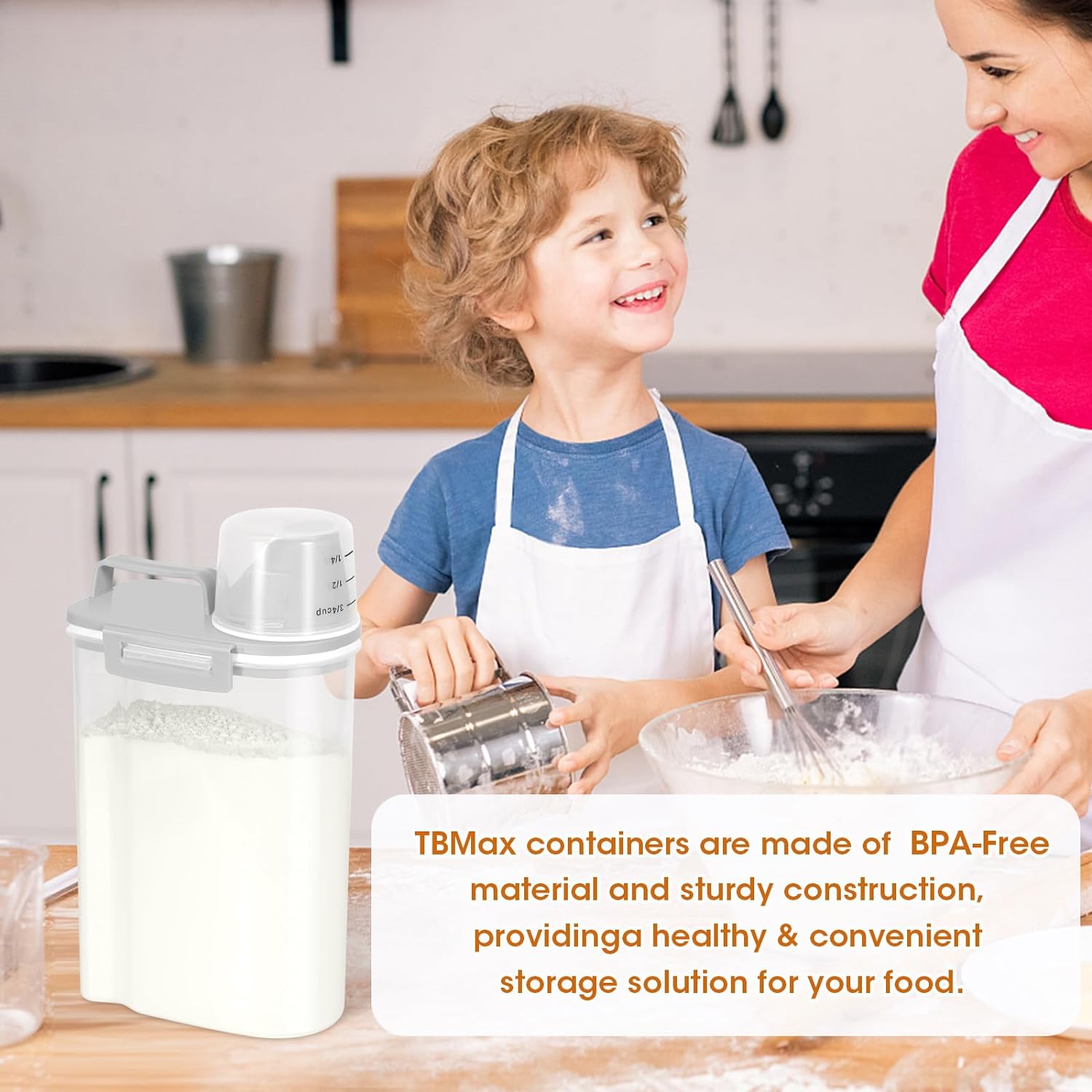 TBMax Rice Storage Container 2 Pack, Plastic Kitchen Pantry Food Storage Container with Cup, Small Pet Dog Cat Food Container Dispenser