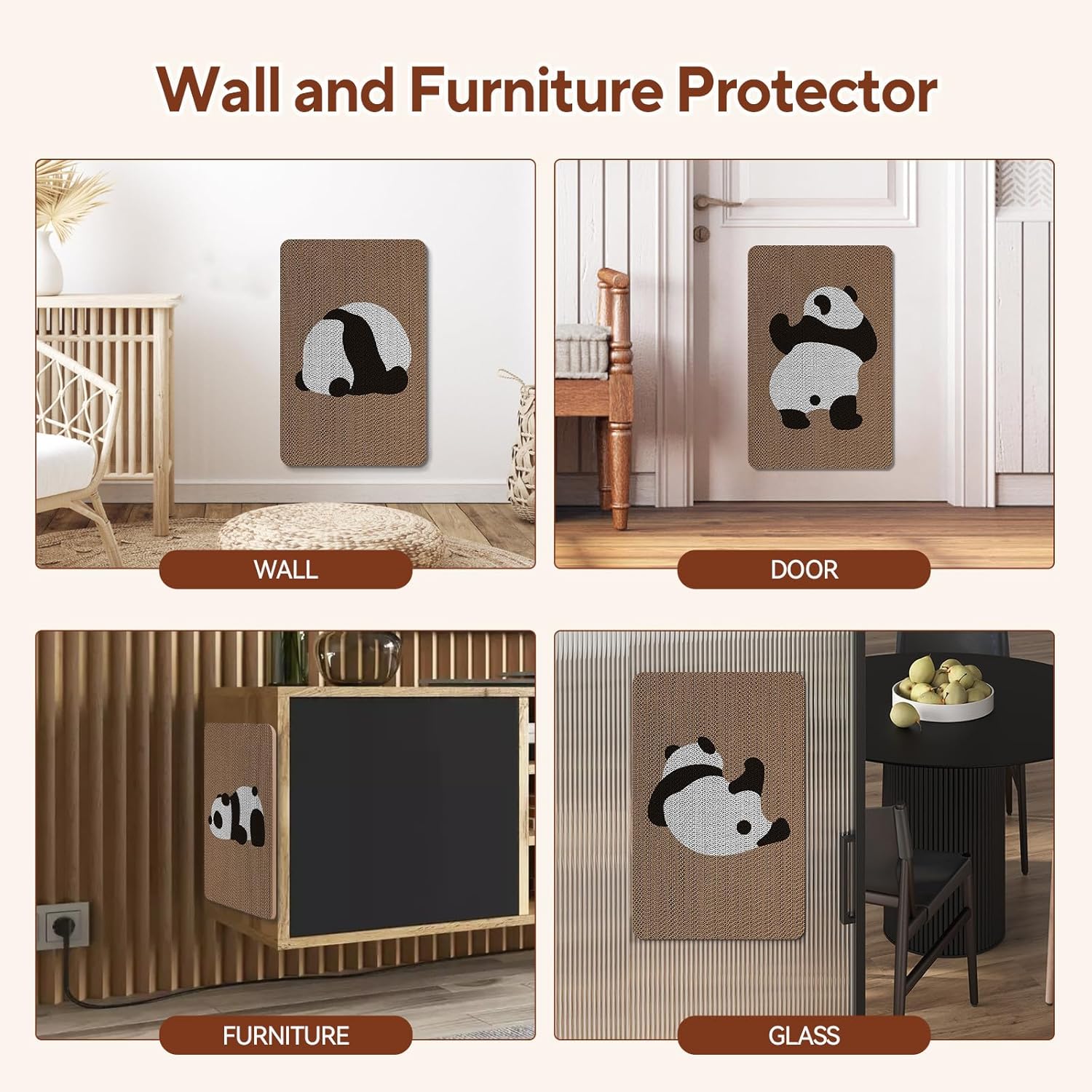 - 【Cute Wall Scratchers】6pcs of the cat scratching boards feature cute panda patterns. This wall-mounted cat scratchers can protect walls, corners and furnitures while seamlessly blending into your home decor.