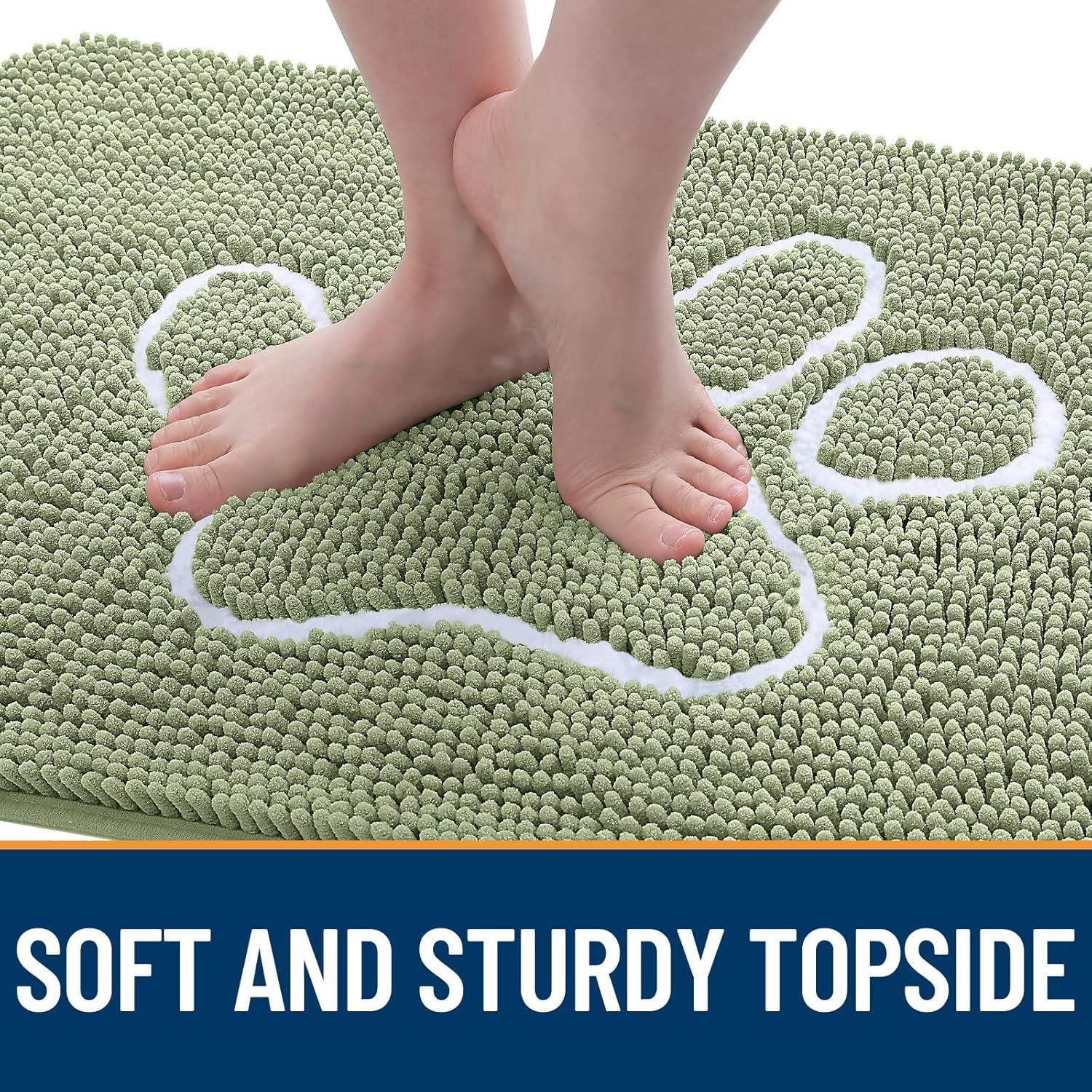 OLANLY Door Mat for Muddy Dog Paws 59x24, Ultra Absorbent Chenille Mud Doormat with Paw Print Design, Non-Slip Washable Doormat for Indoor Entryway, Quick-Dry Pet Bed Mats for Dirty Dogs, Sage Green