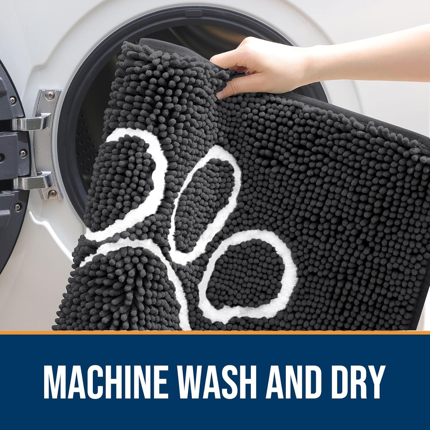 OLANLY Door Mat for Muddy Dog Paws 47x24, Ultra Absorbent Chenille Mud Doormat with Paw Print Design, Non-Slip Washable Doormat for Indoor Entryway, Quick-Dry Pet Bed Mats for Dirty Dogs, Dark Grey