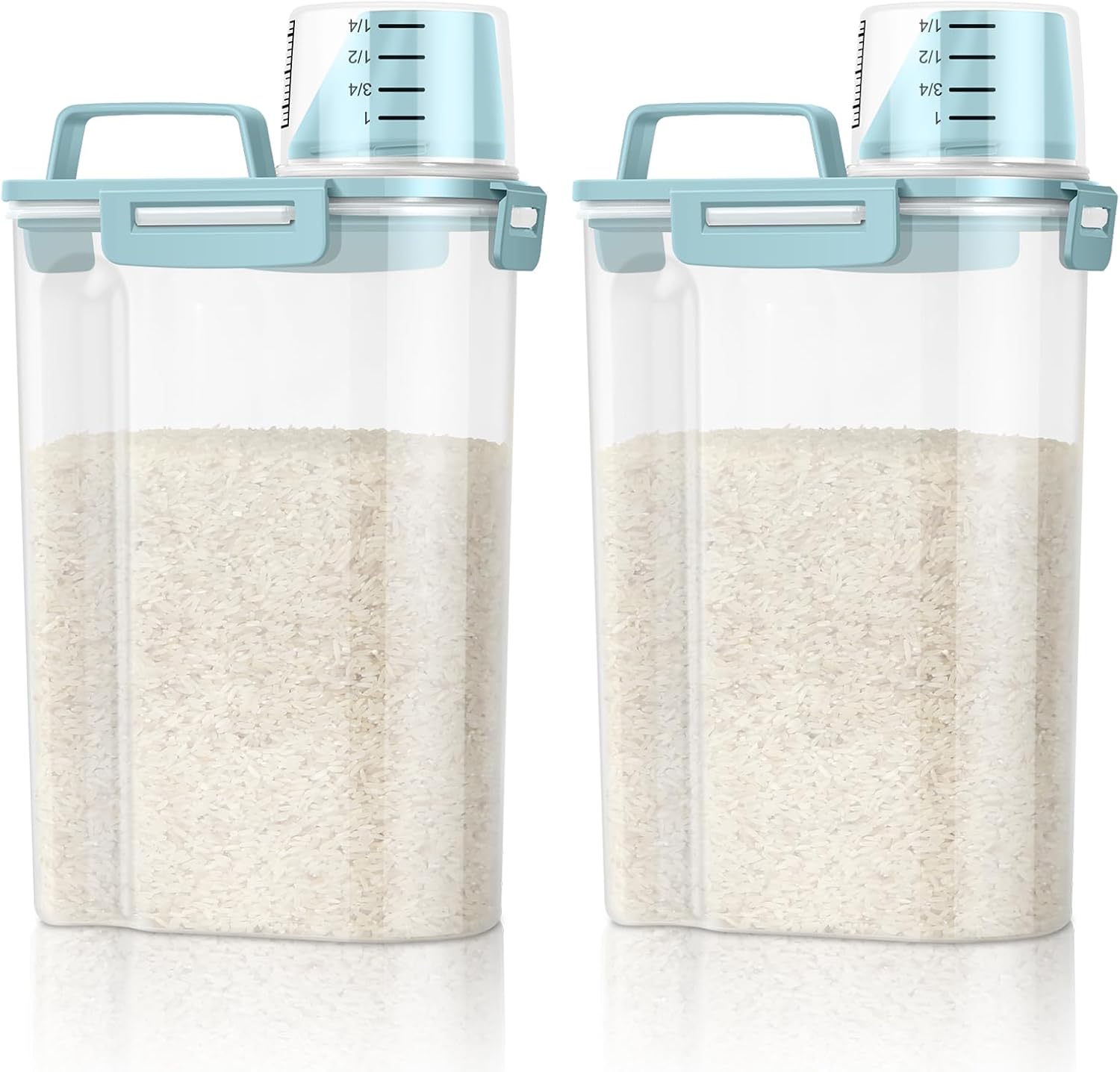 TBMax Rice Container Cereal Storage Container 2 Pack 5 Lbs, Plastic Kitchen Pantry Food Storage Container with Cup, Small Pet Dog Cat Food Dispenser -Blue
