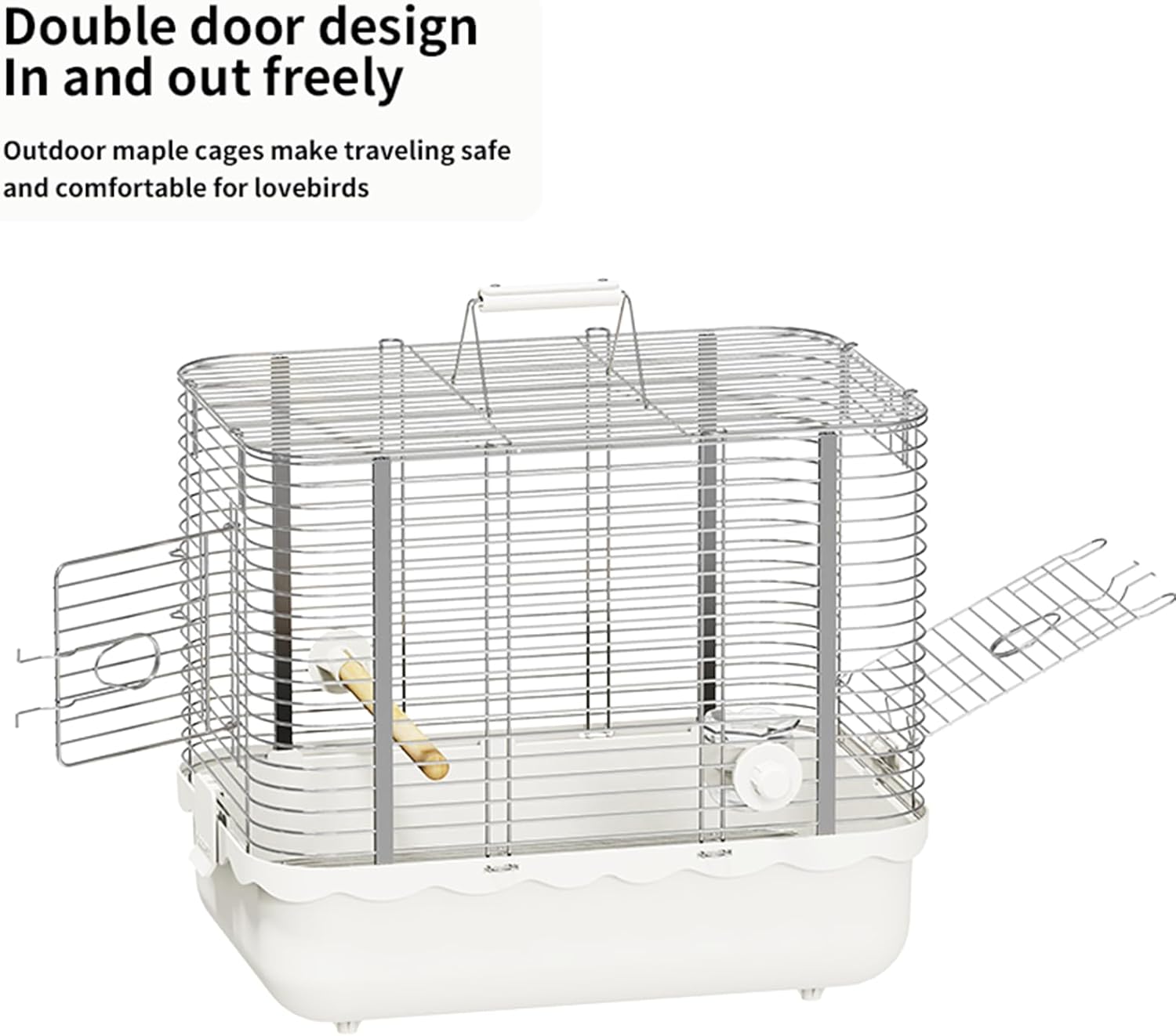 Bird Carrier Travel Cage, Durable Portable Stainless Steel Birdcage with Bird Perch & Feeding Bowl for Parrots Canaries Budgies Lovebirds Conures Cockatiels (Large White)