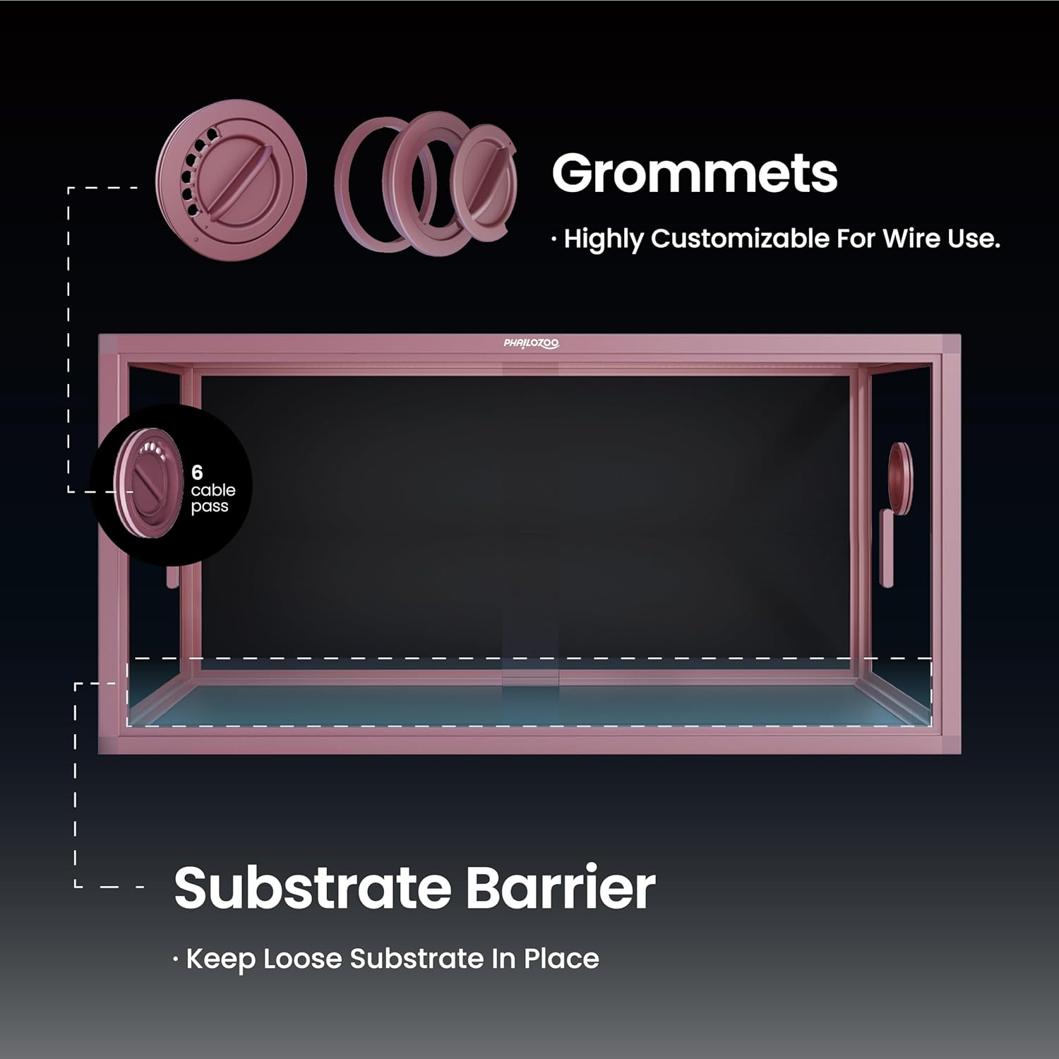 - ăSize MattersăPhailozoo 50 gallon reptile tank measures 36''Lx18''Wx18''H, perfect for desert and rainforest bioactive setup, such as bearded dragon tank, snake tank, and lizard tank. Spacious playground for your beloved reptiles to explore and thrive while being safe.