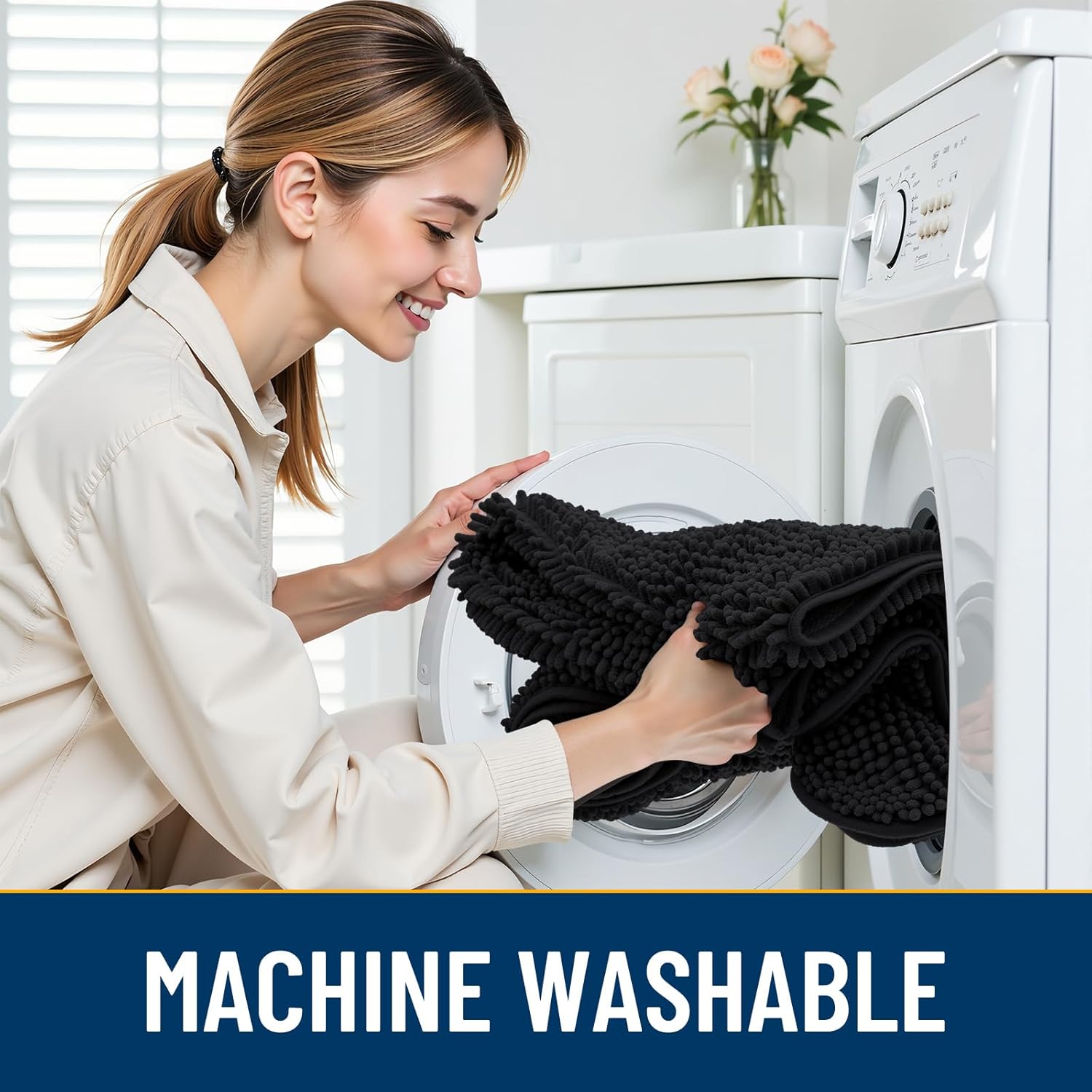 Smiry Dog Door Mat for Muddy Paws 59x24, Absorbs Moisture and Dirt Doormat, Non-Slip Washable Quick Dry Chenille Front Door Mat Indoor Entrance, Entryway Carpet for Inside Floor, Black