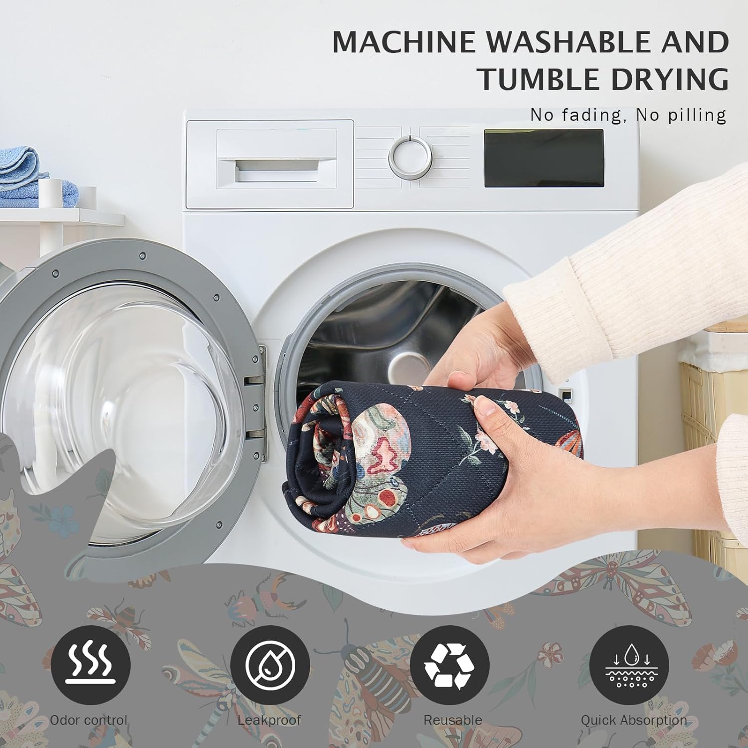 IEUUMLER Washable Pee Pads for Dogs, 2 Pack Insect Pattern Reusable Waterproof Puppy Potty Pads, Non-Slip Absorbent Pet Training Pads for Playpen Crate Bed EU014