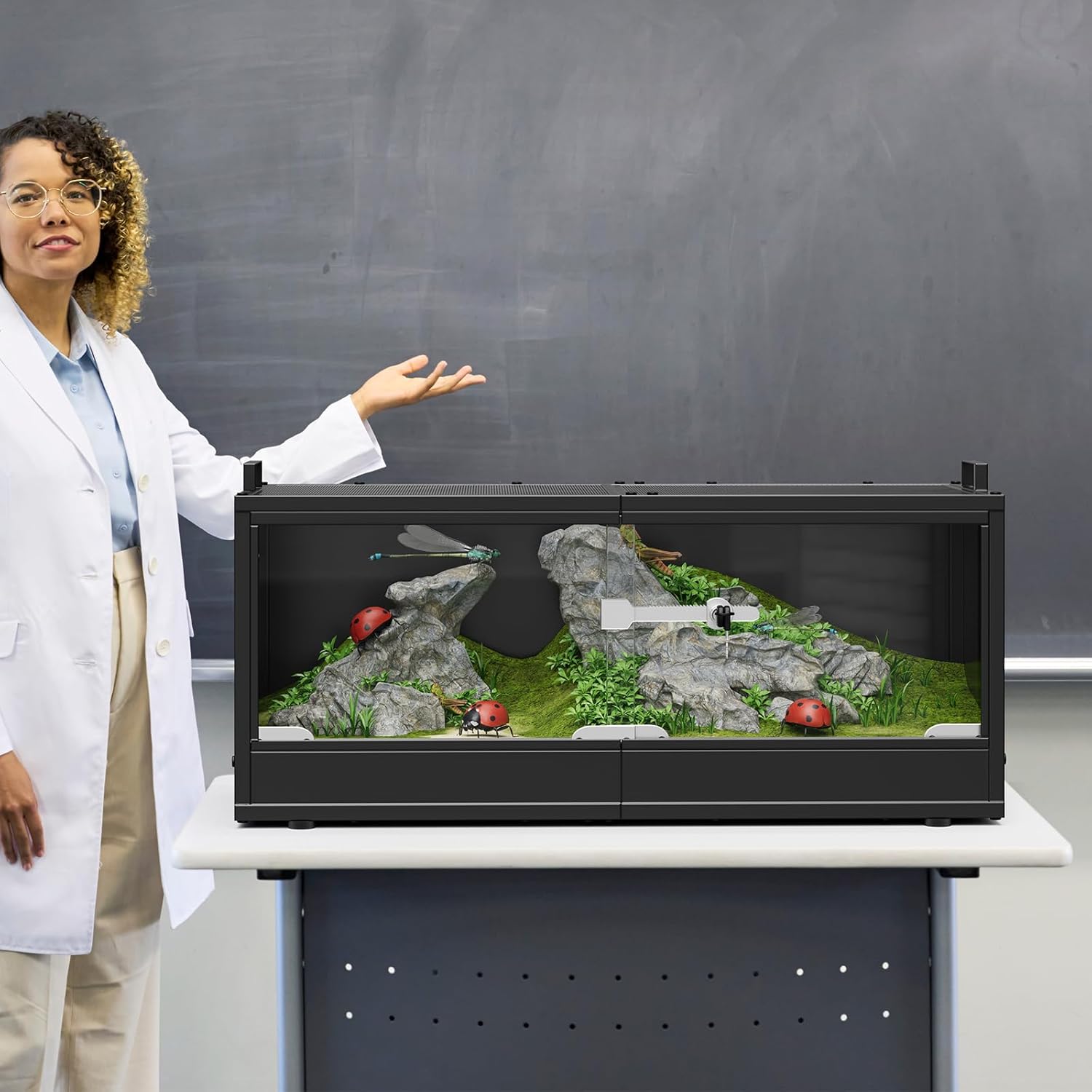 - Suitable for Beginners: Constructed with a high-quality metal frame, this 20-gallon reptile terrarium provides an ideal warm home for your small reptiles, amphibians, and invertebrates. It's perfect for spiders, lizards, geckos, frogs, snakes, tarantulas, hermit crabs, or any other insect.