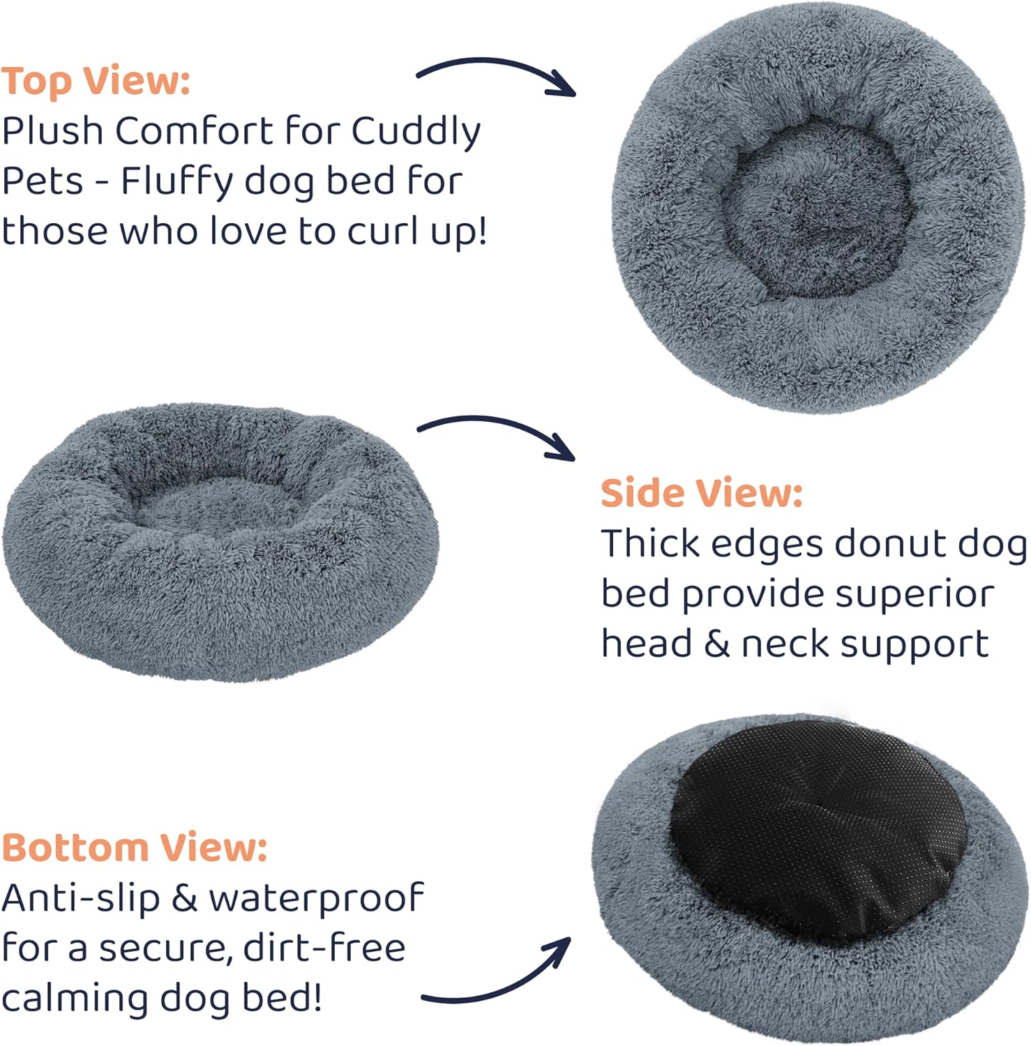 - Wrap Your Pet in Cloud-Like Comfort - Our Petloox dog donut bed is designed with ultra-soft, shaggy plush materials that pets absolutely adore, creating a cuddly, inviting space theyâll love to snuggle into. Perfect for restful naps and relieving anxiety, this round dog bed is perfect for every size and breed, from tiny puppies, chihuahuas, and yorkies to larger dogs who crave extra warmth and comfort.