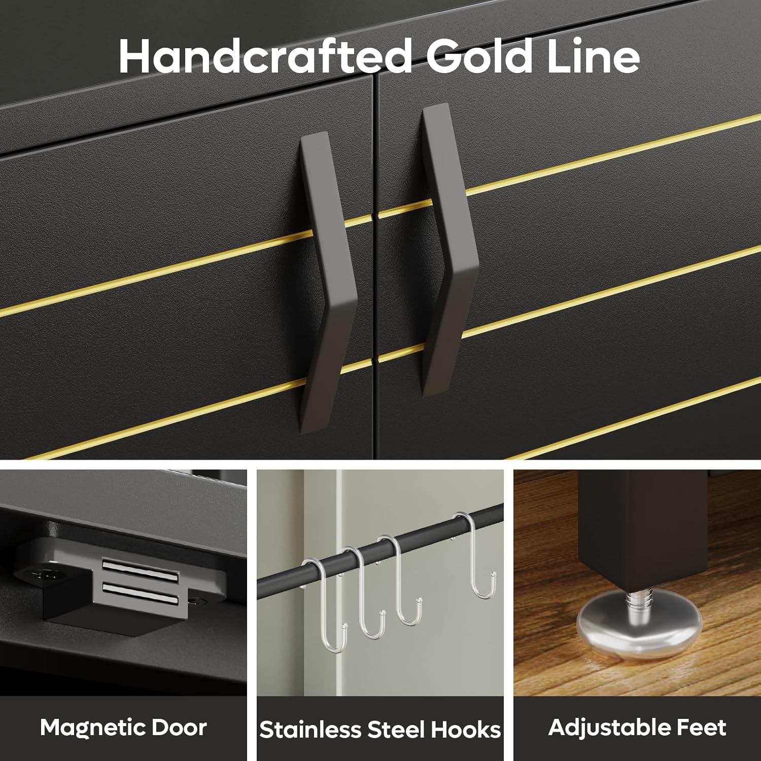 - Aquarist-Friendly Design: Designed for dedicated aquarists, the 20-gallon fish tank stand features Magnetic Cabinet Doors for easy access, four hooks for hanging nets or tools, and adjustable feet for improved stability