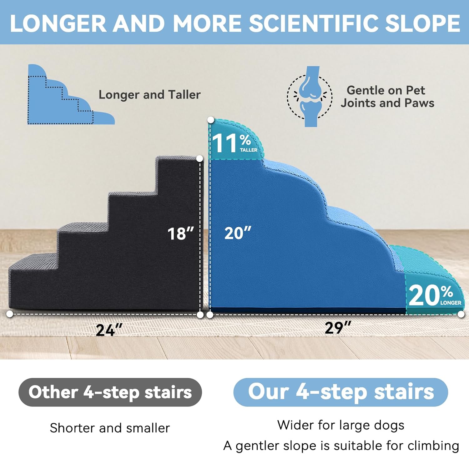 Dog Ramp and Stair for Bed 16" H-20 H,3-Step Cat Stair for Sofa and Chair,4-Step Dog Ramp for High Bed and Window,Durable Nonslip Fabric Cover for Indoor (Blue-20“H, Pet Friendly, 4)