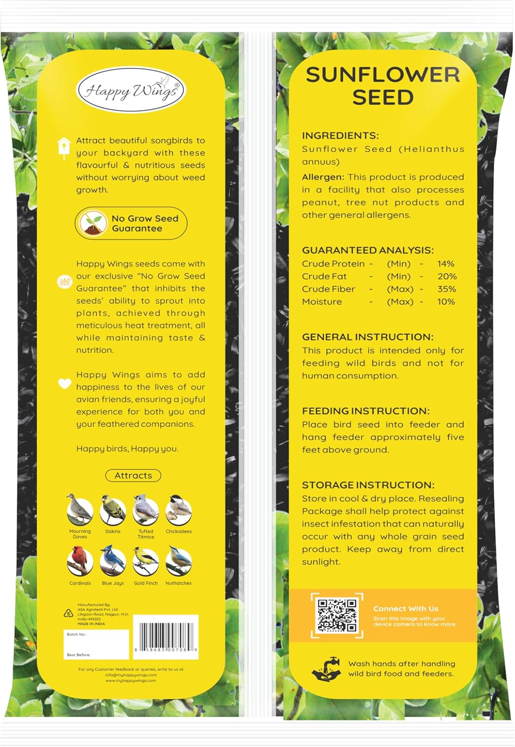- Happy Wings Wild Bird food are no-grow bird seed which is designed to prevent sprouting, keeping outdoor spaces clean while providing essential nutrition for wild birds.