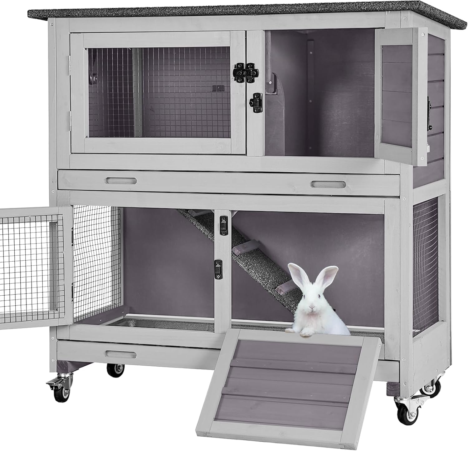 - Rabbit cage with TWO DEEPER pull out trays that wonât leak off and easy-to-clean.