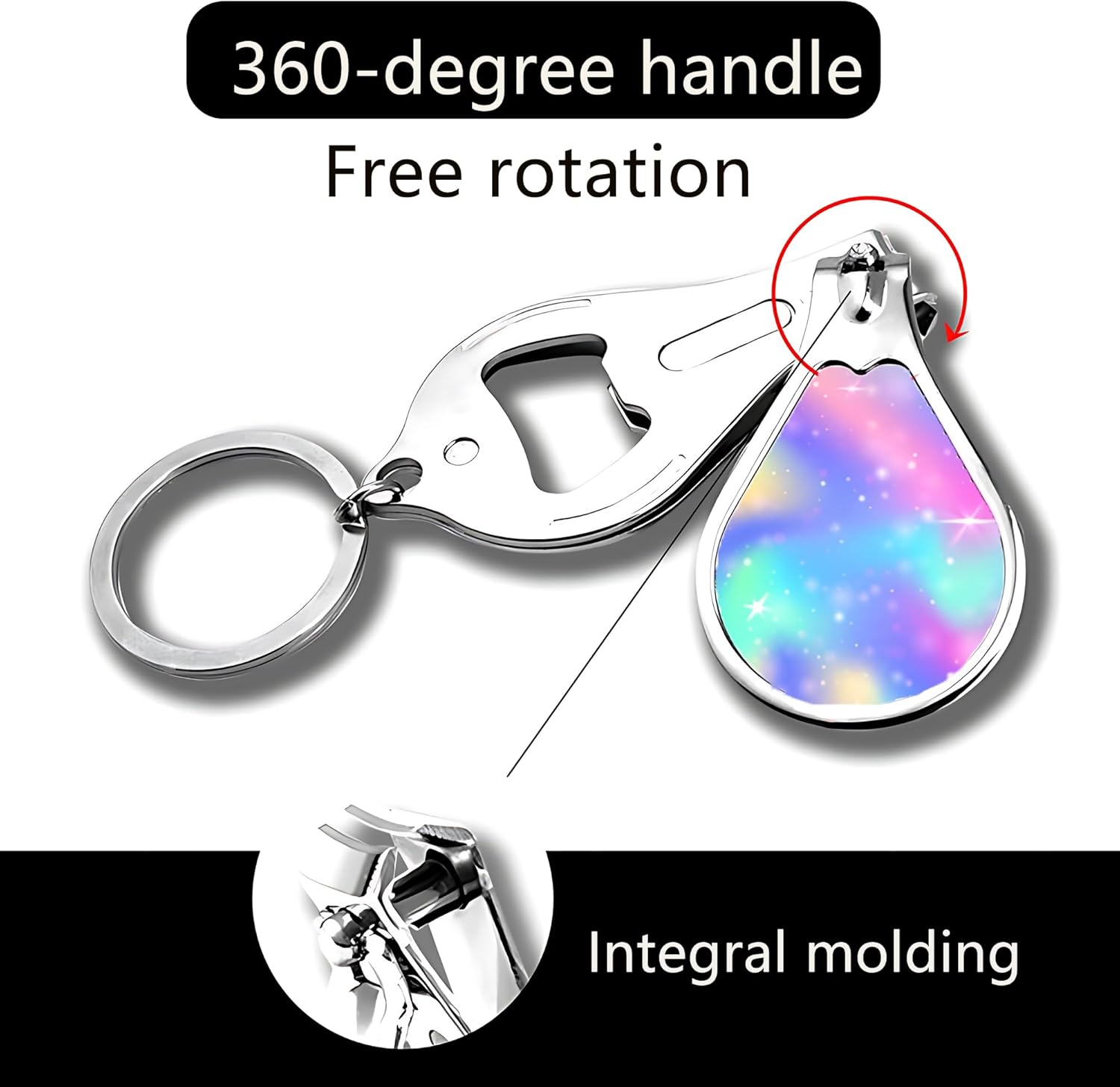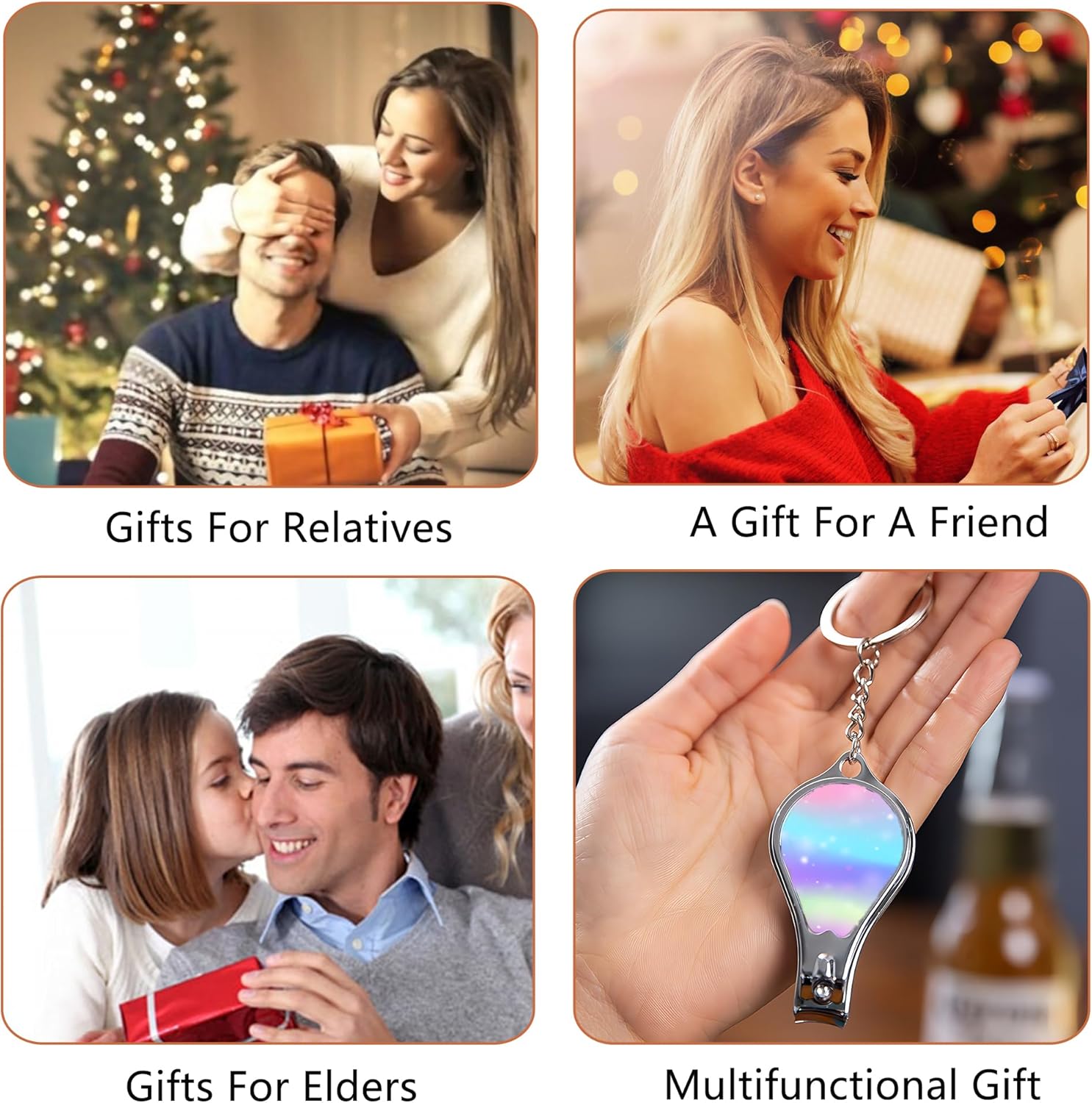 Nail Clippers with Key Chain Cute Stainless Steel Nail Cutter with File Professional Toenail Clipper for Men Multifunction Toenail Clipper 2 Pack Nique Cutter for Adult(Rainbow Light)