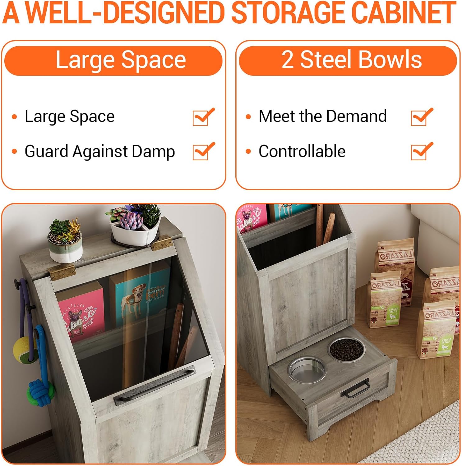 - --Charming Aesthetic: Crafted from thick engineered wood with a wood grain surface, this dog storage cabinet complements farmhouse decor. Its sleek design adds charm and blends effortlessly with your furniture, making it a perfect addition to your home
