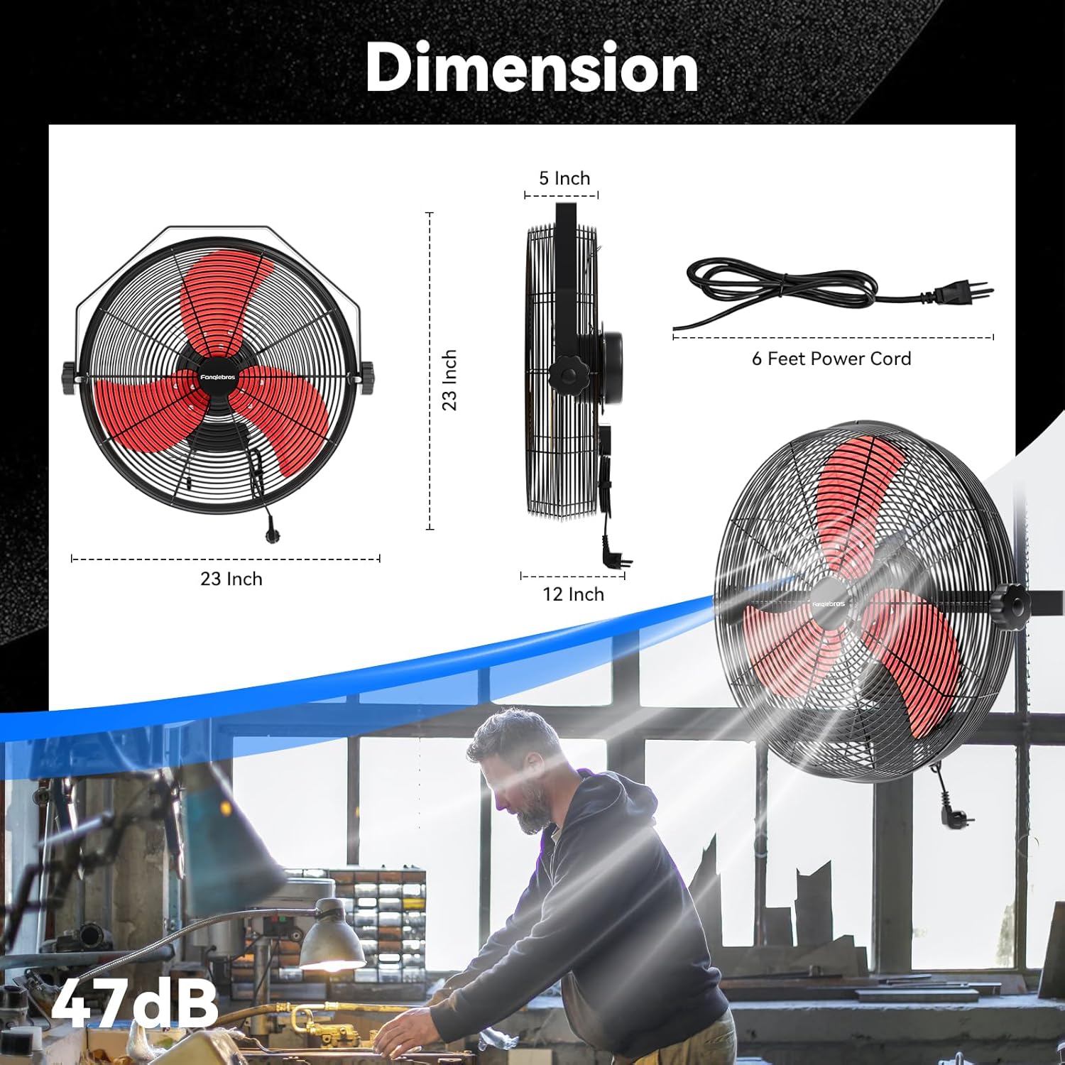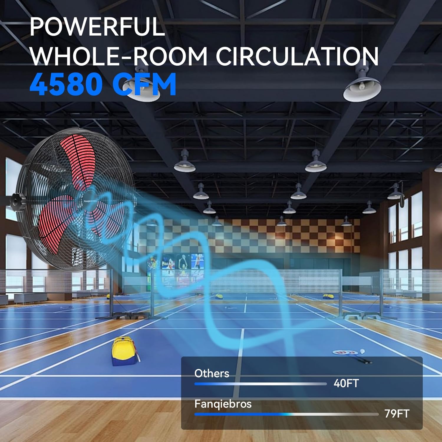 - đđ¨đ°-đđ¨đ˘đŹđ đđđŹđ˘đ đ§ - The heavy-duty wall fan operates at a high speed of 4580 CFM with a noise level of only 60dB, which is lower than the industry standard, creating a quieter gathering or working environment