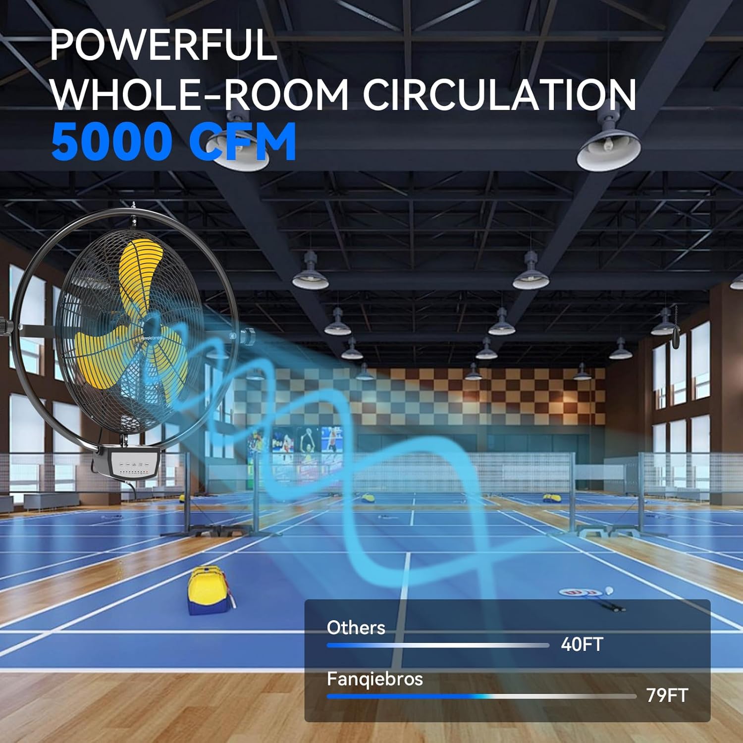 - ๐๐ข๐ ๐ก ๐๐๐ฅ๐จ๐๐ข๐ญ๐ฒ ๐๐ข๐ซ ๐ ๐ฅ๐จ๐ฐ - The heavy duty wall fan design makes the operation more intuitive and simple, and the high, medium and low speeds can be adjusted by the remote control to meet different needs. High speed 5500 CFM, medium speed 4000 CFM, low speed 3800 CFM, providing hurricane-like airflow to meet your garages, shops or outdoor use๏ผNote: used on a covered patios or porch, BUT NOT EXPOSED TO RAIN๏ผ