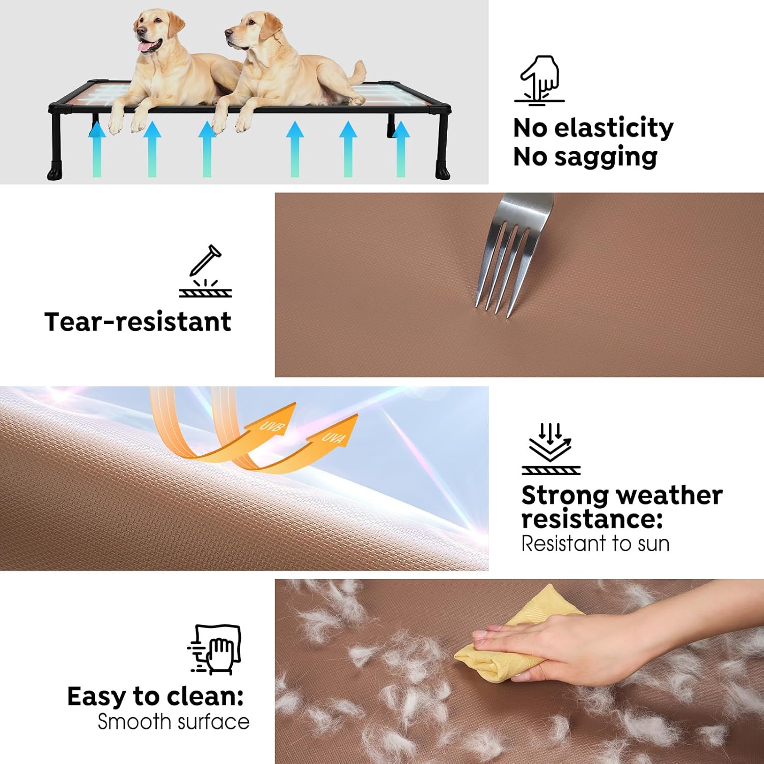 - Easy to Clean: The surface of the fabric is smooth, easy to wipe off the dirt on the raised dog bed; And dog cot can also be rinsed with water and then dried