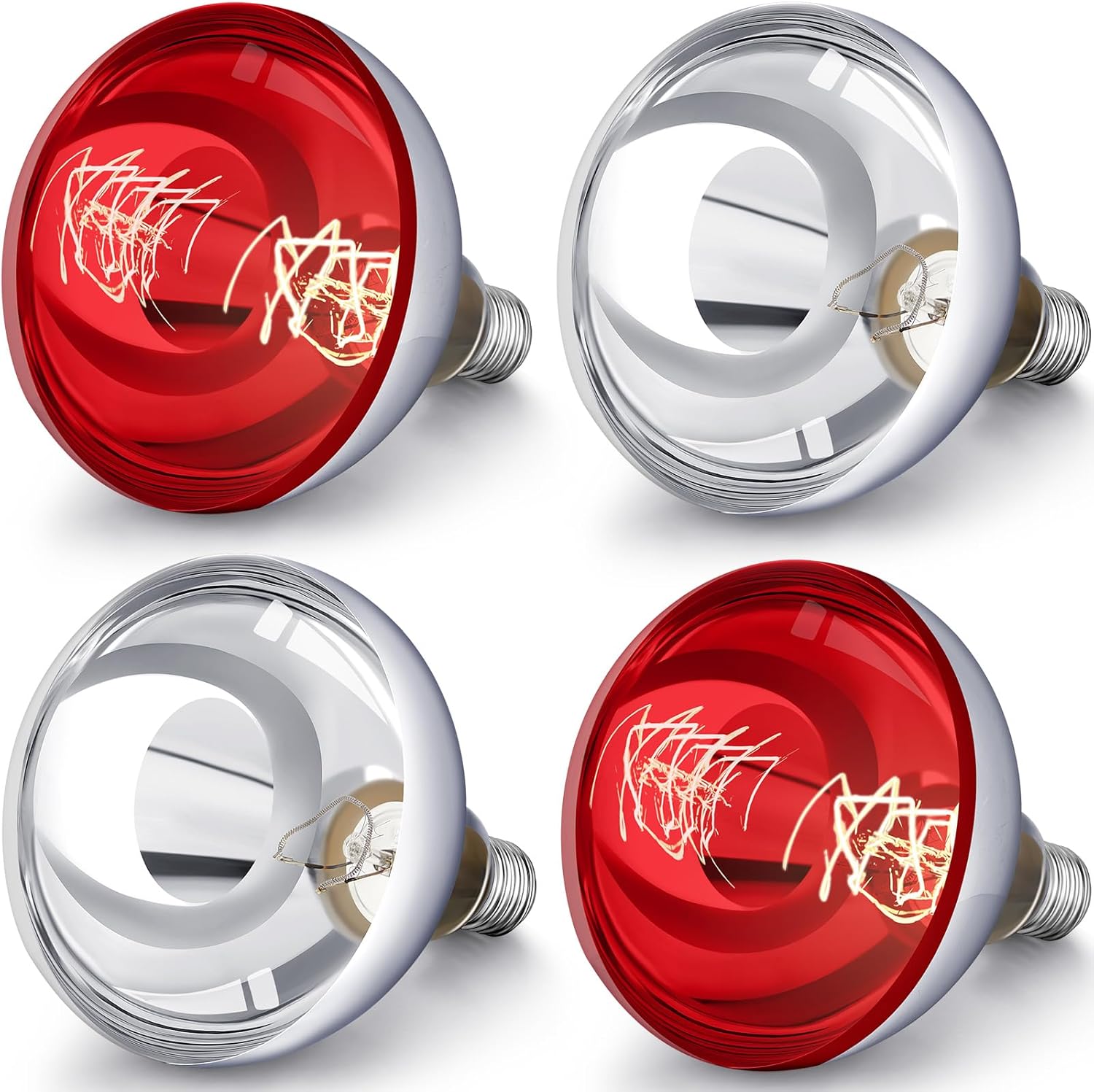 - Practical and Versatile: there are 4 pieces of bathroom heat lamp bulbs, which are an essential tool for pet owners and farmers alike; With their standard E26 medium screw base design, these bulbs are easy to operate and install, making them suitable for a wide range of occasions; They can be applied to provide radiant heat to keep your pets warm, create a sunbathing area for temperature adjustment, and even make reptiles and amphibians more active and comfortable