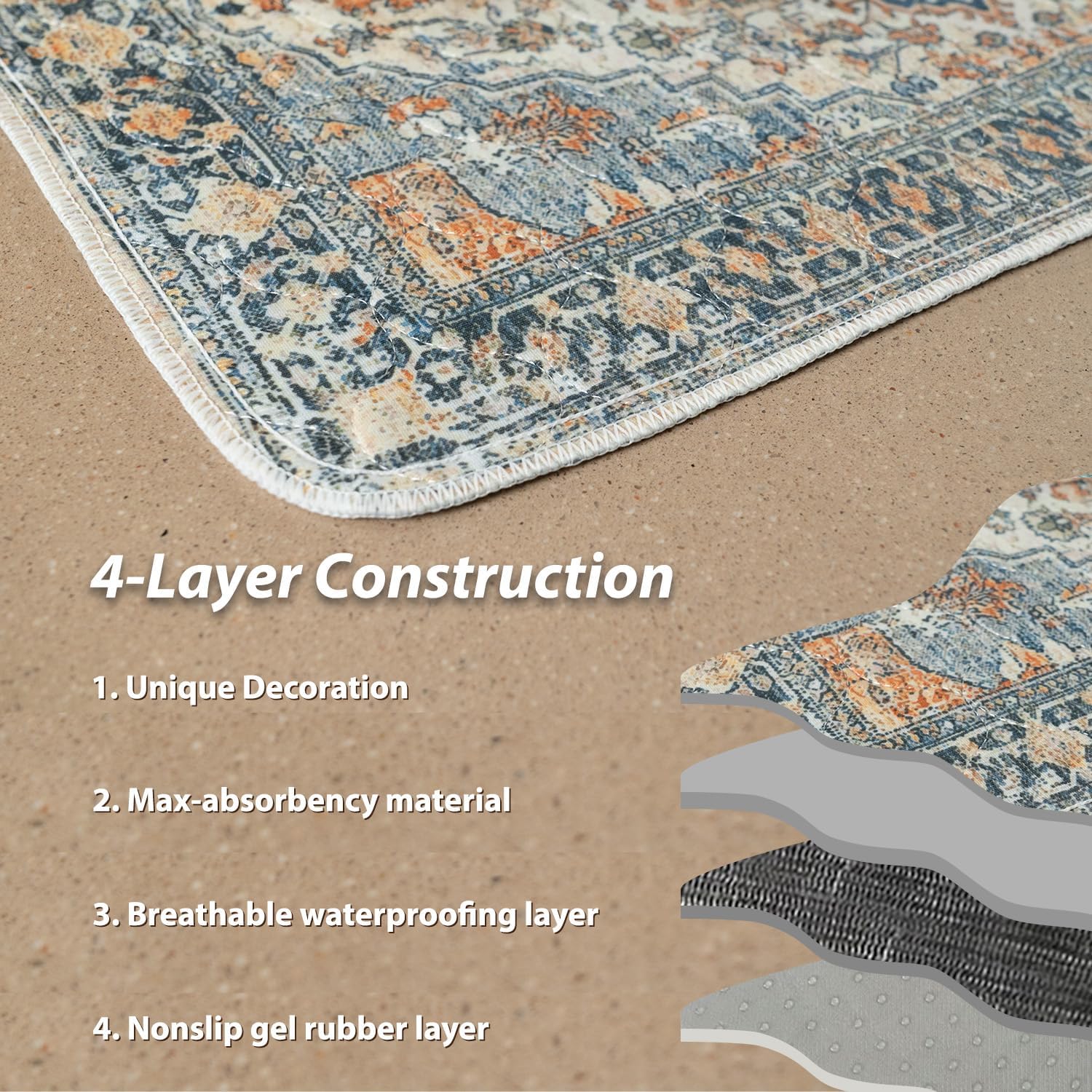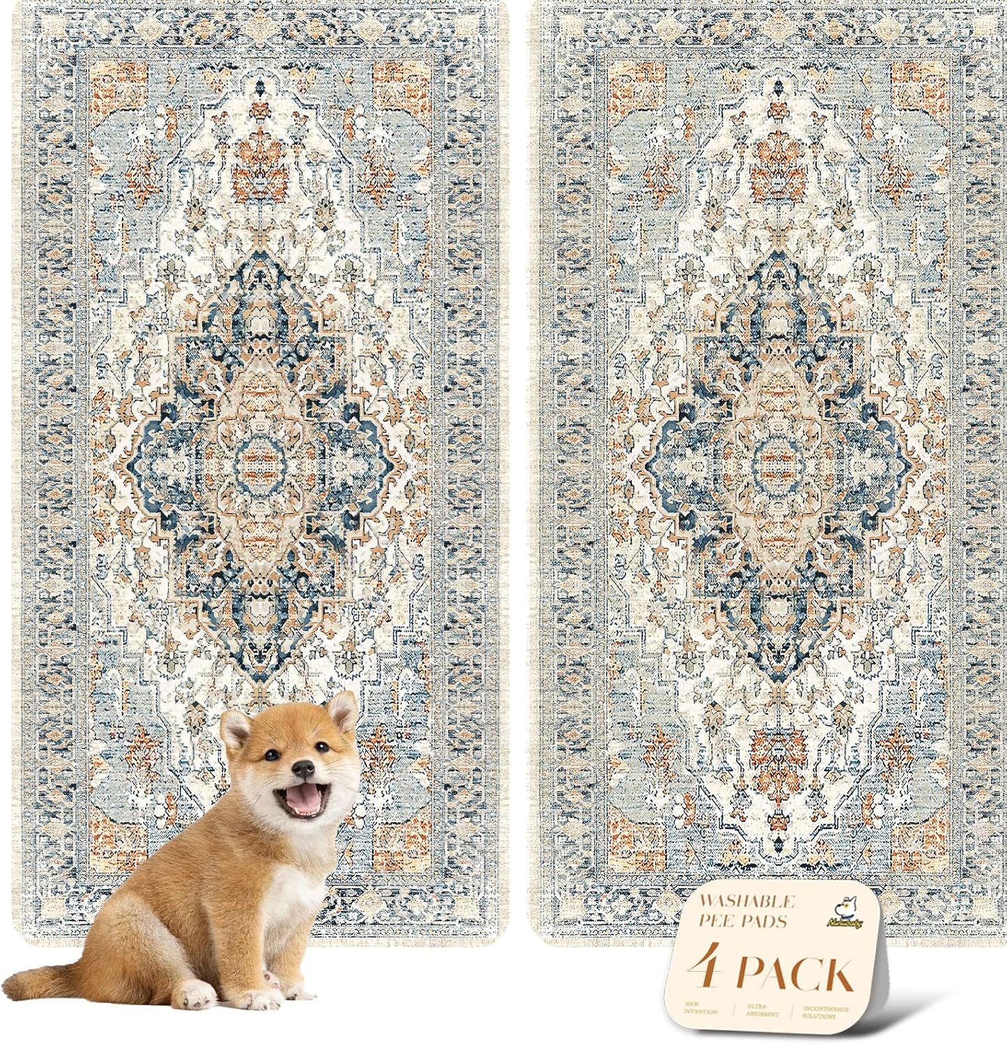 nunubaby 4PACKWashable Pee Pads for Dogs, Stylish, Non-Slip and Leak-Proof Pee Pads. Reusable Potty Pads for Dogs for Crates and Floors.(Beige/Multi, 24" x48")