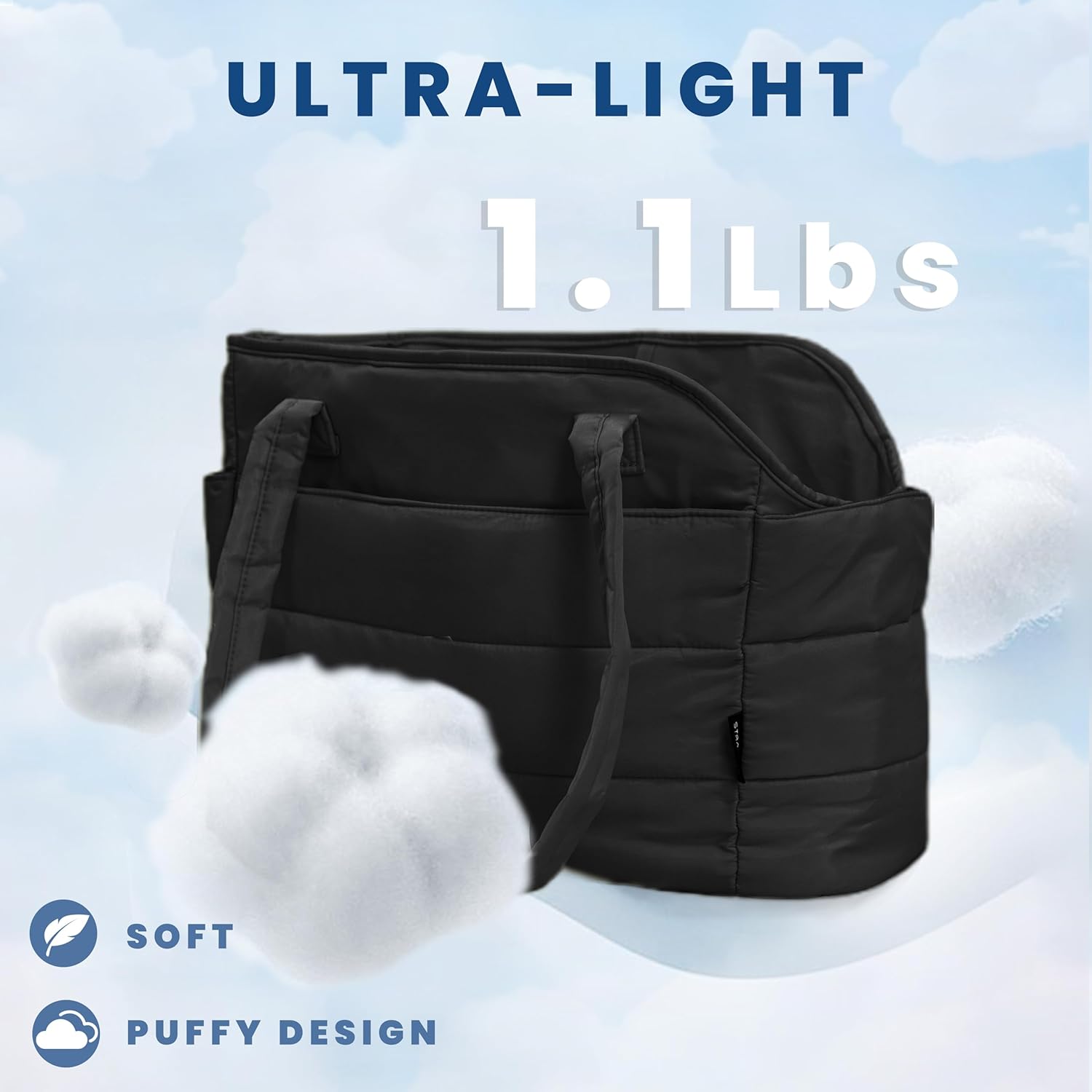 - Ultra-Light & Stylish Puffy Design: Weighing just 1.1 lbs, this chic puffy dog carrier is crafted from ultra-light materials with a fashionable quilted exterior. The removable padded hard-bottom base provides strong, stable support. Perfectly sized at 17"L x 8"W x 12"H to comfortably carry small dogs up to 15 lbs (6.8 kg)âideal for Chihuahuas, Yorkies, puppies, and other toy breeds.