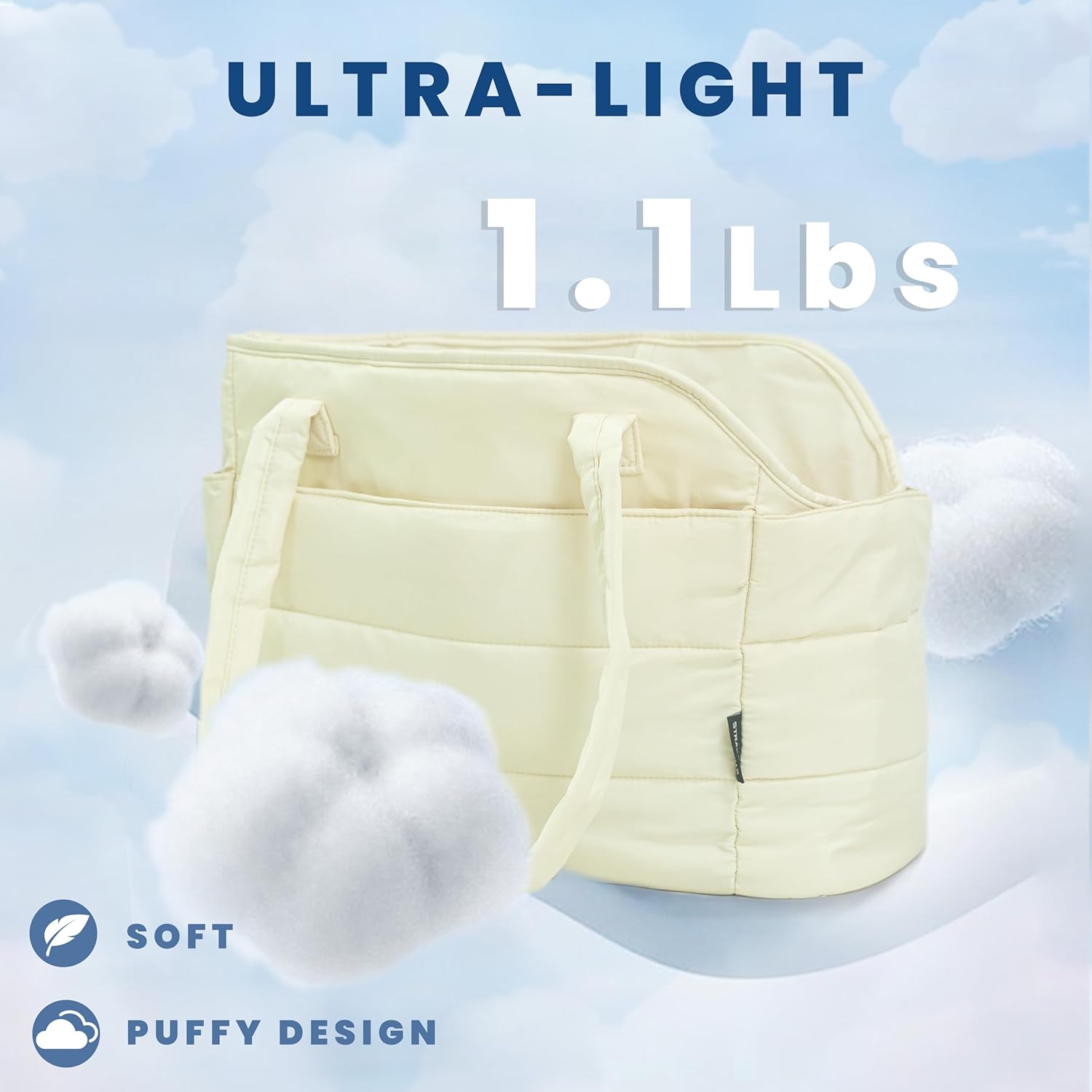 - Ultra-Light & Stylish Puffy Design: Weighing just 1.1 lbs, this chic puffy dog carrier is crafted from ultra-light materials with a fashionable quilted exterior. The removable padded hard-bottom base provides strong, stable support. Perfectly sized at 17"L x 8"W x 12"H to comfortably carry small dogs up to 15 lbs (6.8 kg)âideal for Chihuahuas, Yorkies, puppies, and other toy breeds.
