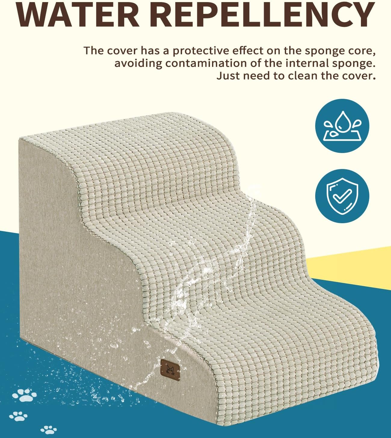 - Sturdy and Stable - Made from 35D high-density foam and eco-friendly material, these dog steps for bed eliminate the need for hard support boards.This pet stair provide soft comfort while ensuring stability during pet crawling.