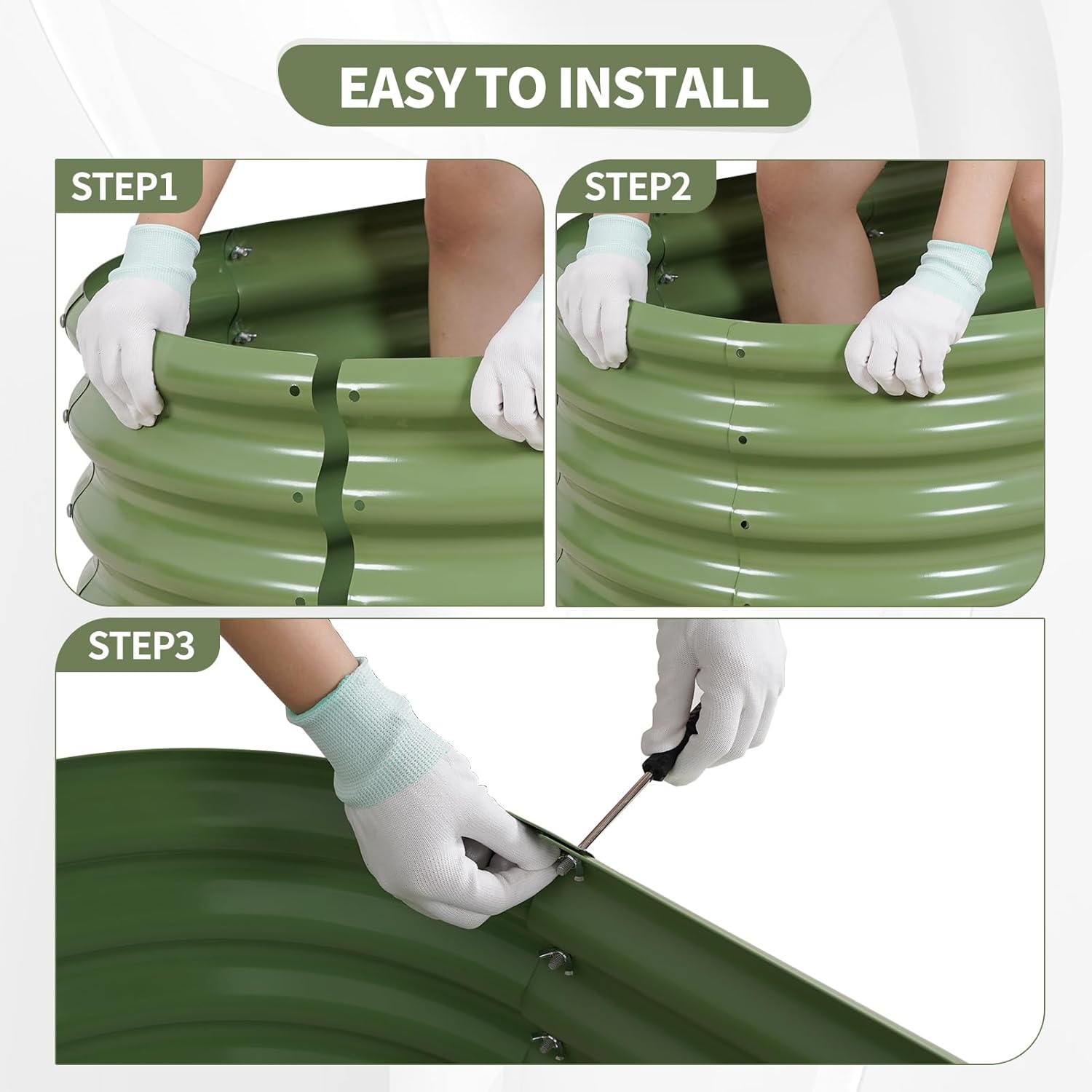 - 【Upgrade Quality & Structure 】The raised garden bed is made of thick galvanized metal with a surface spray coating, which is rust proof and anti-corrosion. Can be used for a long time. The oval design ensures uniform surface force and prevents deformation. More durable than other raised planter box, becoming a good helper for your garden