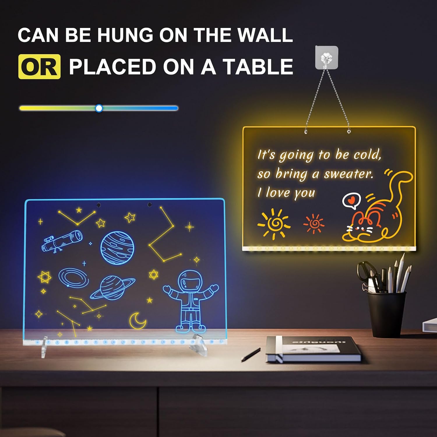- Wide Range of Uses: The light up drawing board is not just for children. It can function as a led note board in the office for jotting down plans. In a child's bedroom, it serves as a message board, acting as a morning reminder to help the child become more independent. In the kitchen, it can be used to note cleaning tasks or dinner lists.â