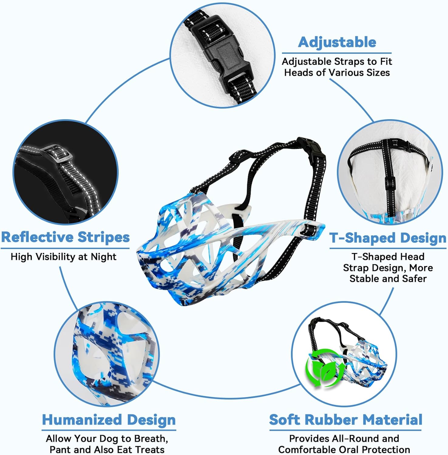 Dog Muzzle for Large Dogs, Breathable Basket Muzzles for Small, Medium and X-Large Aggressive Dog, Allows Panting Drinking, Suitable for Grooming Trimming Training (Camouflage Blue, M)