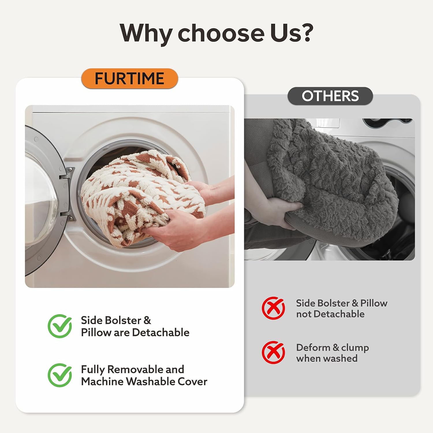 FURTIME Orthopedic Dog Beds Large Sized Dog, XL Washable Memory Foam Pet Couch Bed with Removable Washable Cover, Non-Slip Bottom with Bolster Sides, Brown