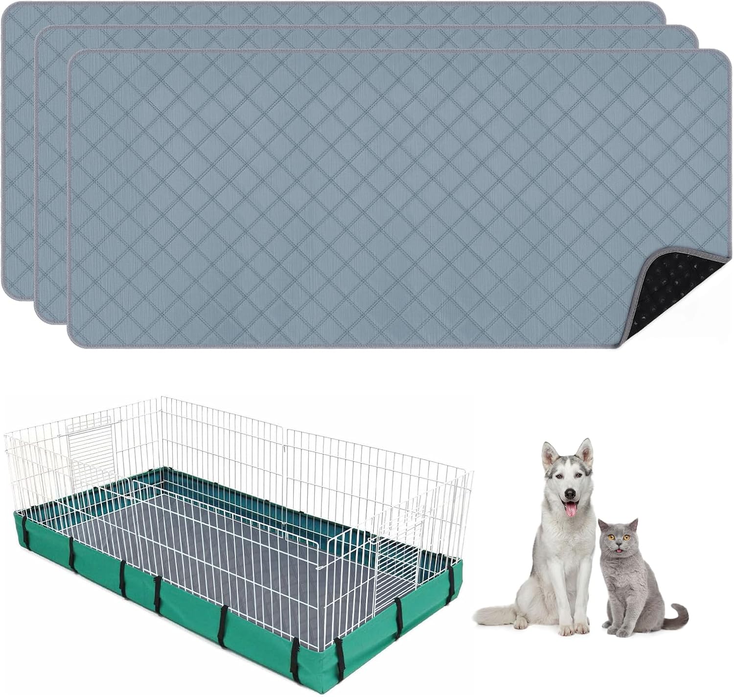 3 Packs Washable Guinea Pig Cage Liners, Waterproof Guinea Pig Pee Pads Reusable Absorbent Bedding Anti Slip Mats for Small Animals Bunny Rabbit Hamster (47 x 24in)