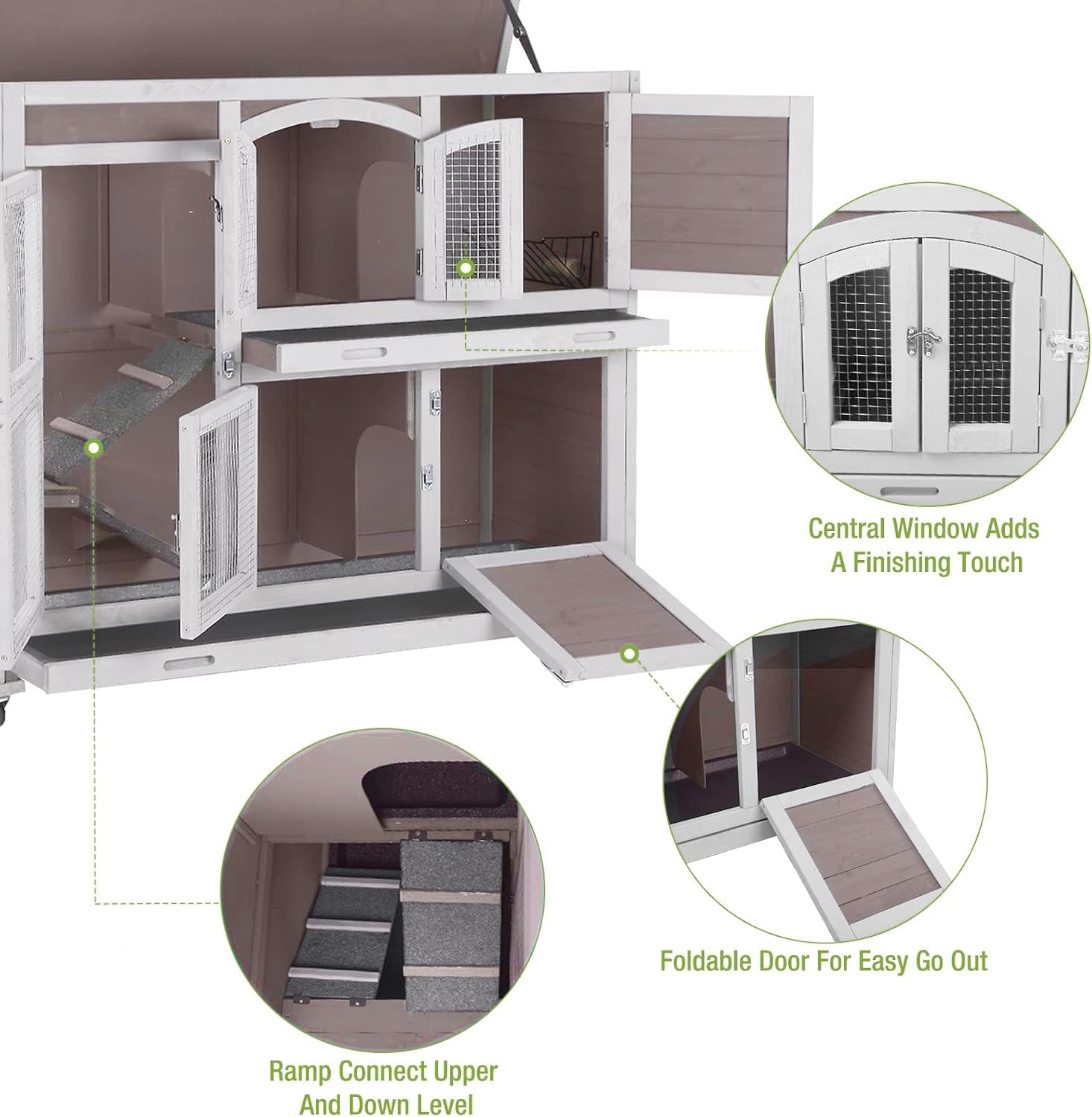 - Easy Movement: 4 stronger metal wheels to move the indoor rabbit hutch easily and quickly. 2 of them are brakes to fix well and keep safe