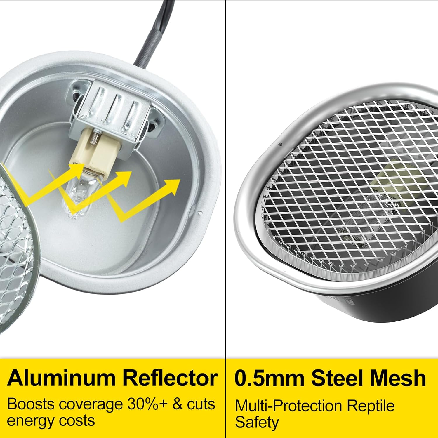 - Enhanced Safety Design: The basking lampshade integrates a protective mesh barrier, preventing reptiles from direct heat source contact. Eliminates the risk of potential accidents or injuries