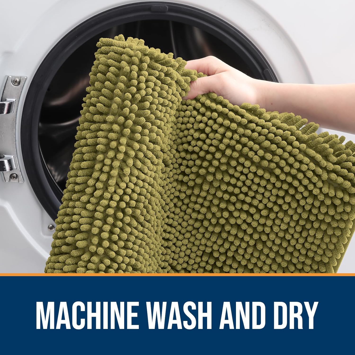 OLANLY Dog Door Mat for Muddy Paws 44x24, Absorbs Moisture and Dirt, Absorbent Non-Slip Washable Doormat, Quick Dry Chenille Mud Mat, Entry Indoor Entryway Carpet for Inside Floor, Willow Green