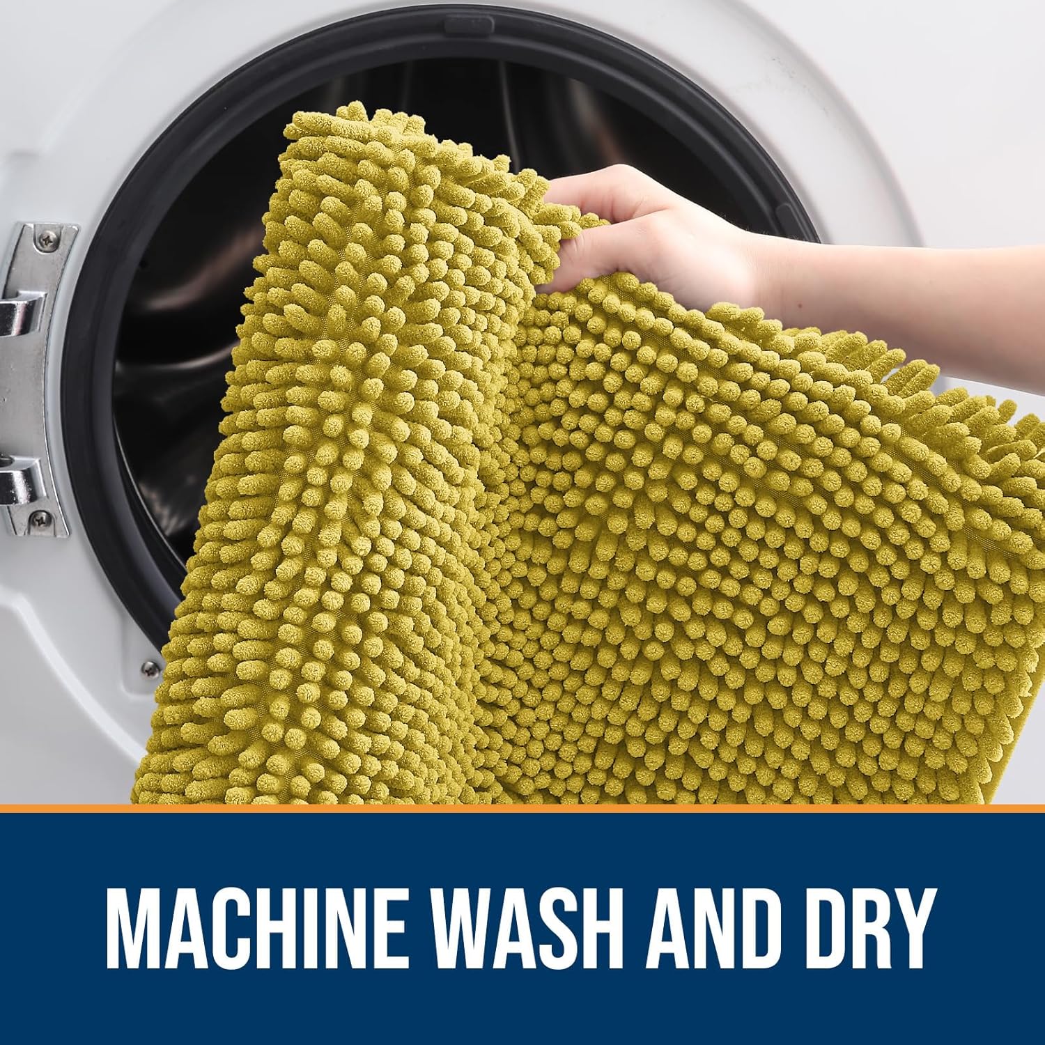OLANLY Dog Door Mat for Muddy Paws 44x24, Absorbs Moisture and Dirt, Absorbent Non-Slip Washable Doormat, Quick Dry Chenille Mud Mat, Entry Indoor Entryway Carpet for Inside Floor, Mustard Yellow