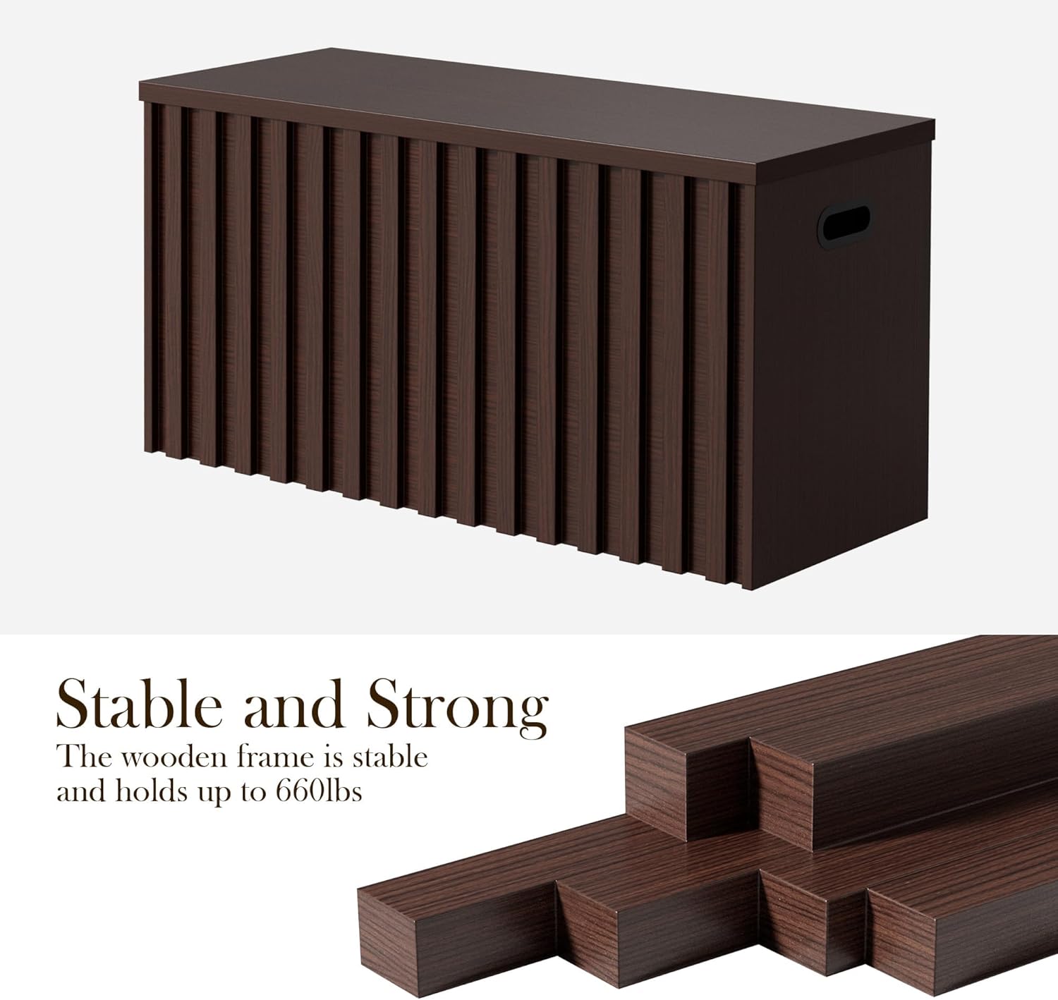 - Detailed Design: Our storage chest is equipped with 2 advanced safety hinges. With the ability to park in any position, it opens and closes slowly to avoid pinching fingers. Meanwhile, 2 wide cut-out side handles that are hand-friendly, it's convenient and effortless to move this storage trunk to wherever you need extra storage or seating