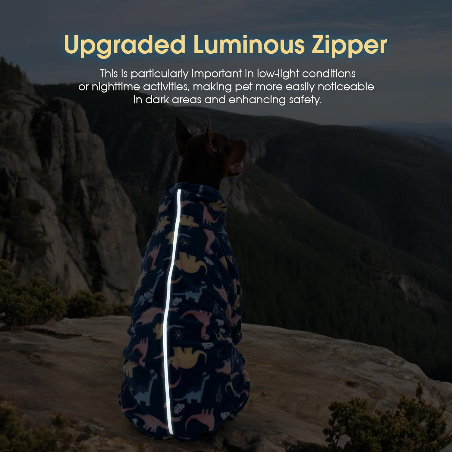 ROZKITCH Large Dog Pajamas Soft Fleece Pullover Pajamas, Pet Windproof Warm Cold Weather Jacket Vest with Reflective Zipper, Jumpsuit Apparel Outfit Clothes for Large Dog Dinosaur XL
