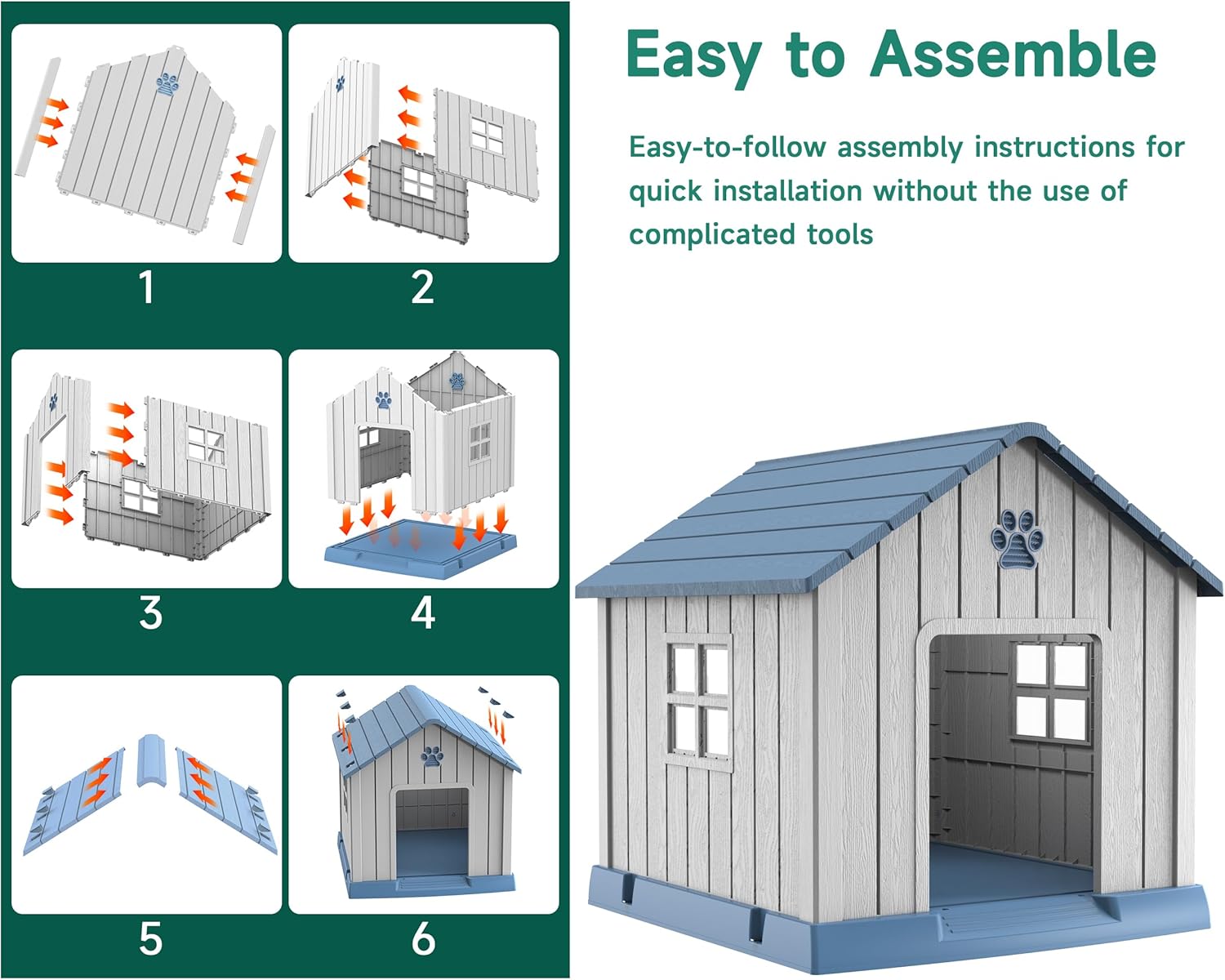 - EASY TO INSTALL AND CLEAN: Comes with all the accessories, follow the step-by-step instructions and an adult can assemble the dog house in less than 20 minutes. Simple to clean, just remove the roof for easy access to the inside of the dog house.